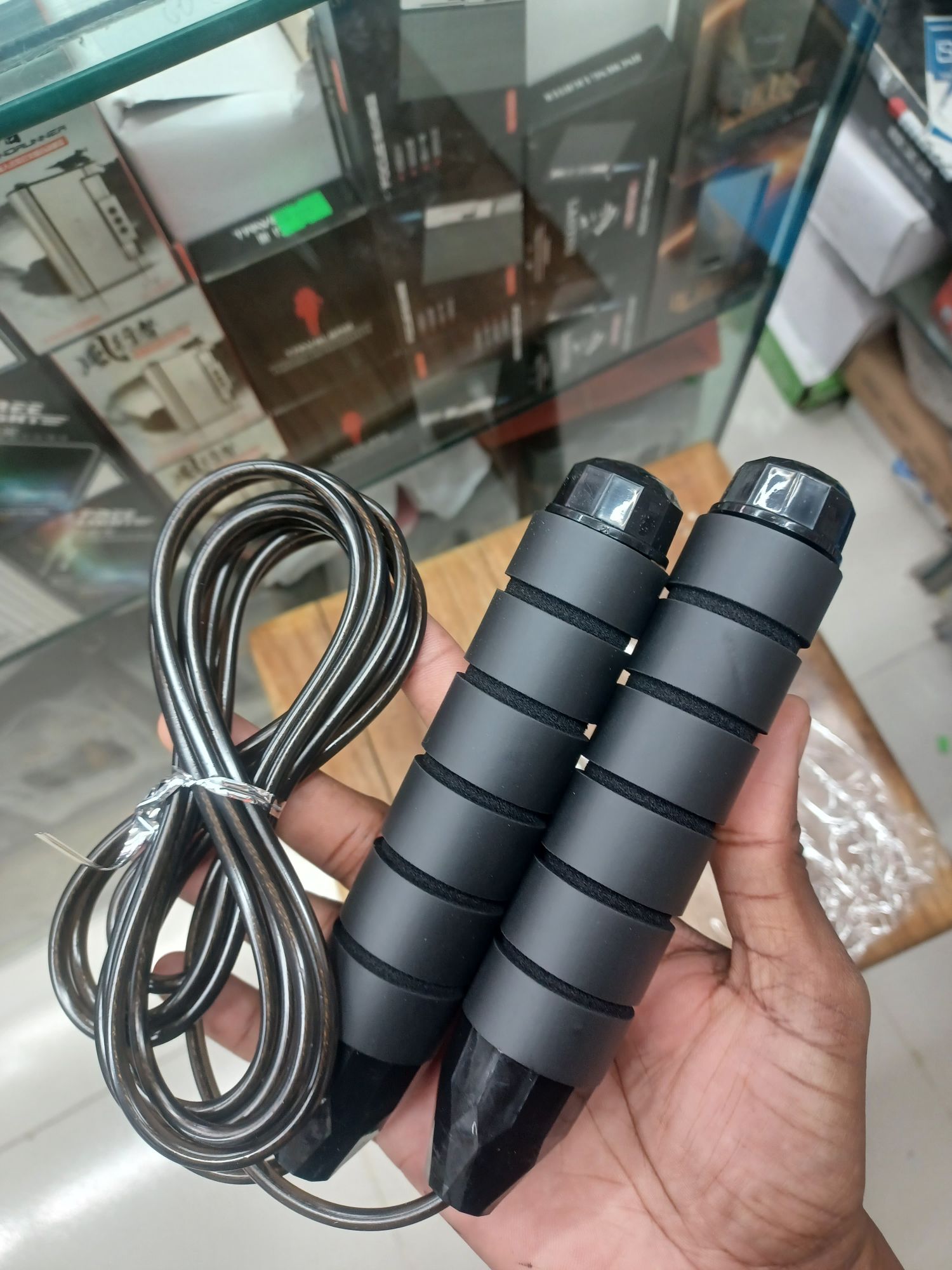 - 1.High quality thickened foam handle,breathable,sweat absorption,anti-slip,and steel wire inner rope,tight and not easy to break.