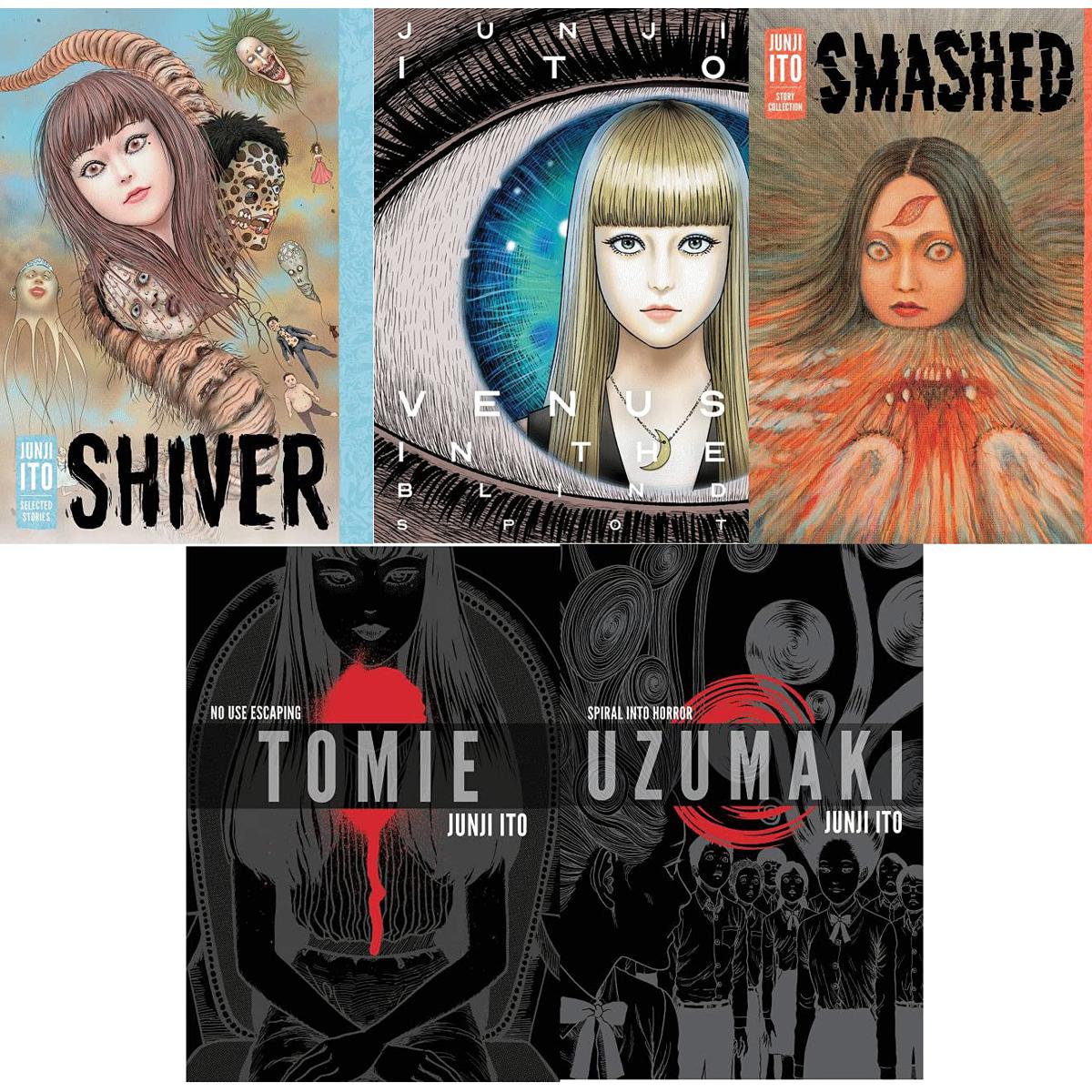Junji Ito Serie 1: Deluxe Ediction Collection 5 book Set (Shiver: Junji Ito Selected Stories, Smashed: Junji Ito Story Collection, Venus in the Blind Spot, Tomie, Uzumaki) January 1, 2020(premium quality)