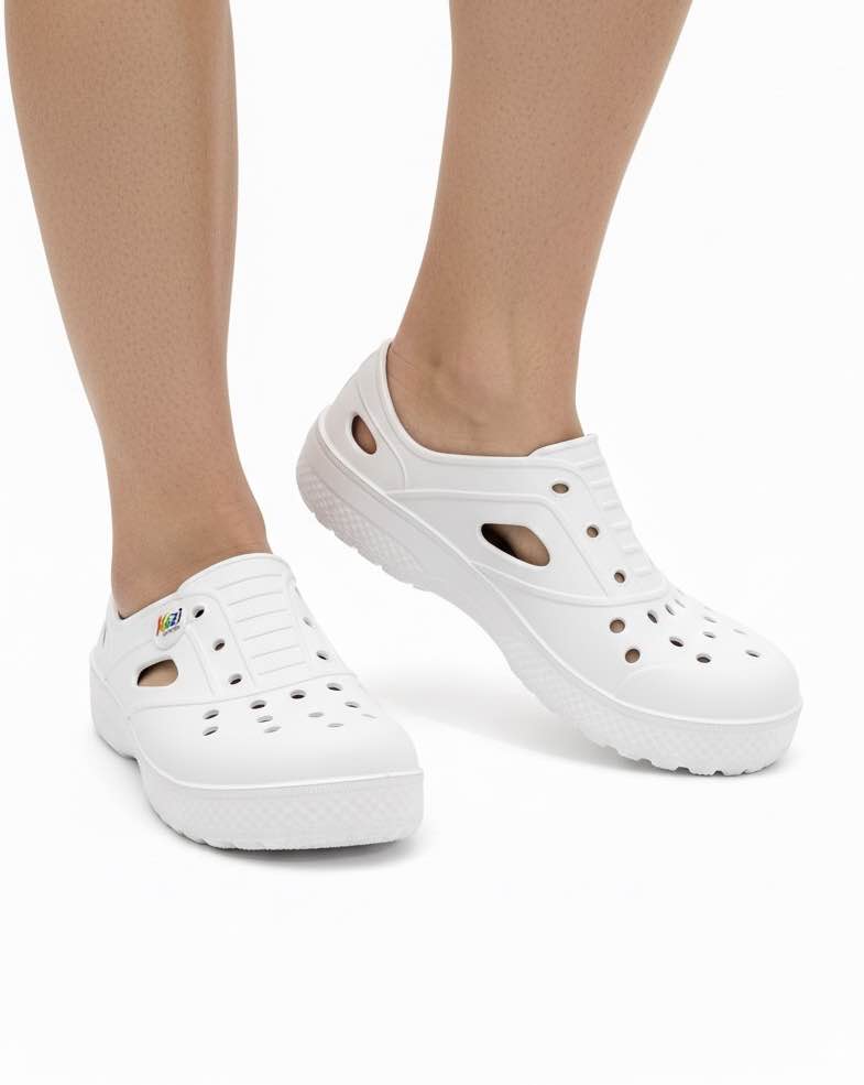 Kazi Urban Clog – Pure White Edition for Men is designed for everyday comfort with a modern urban touch. Made from high-quality lightweight EVA material, this clog offers excellent cushioning and long-lasting durability. The slip-on & pull-on design allows quick and hassle-free wear, while the anti-slip sole ensures safe and confident walking.