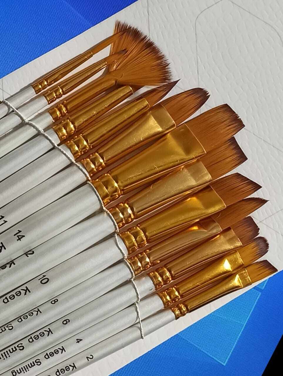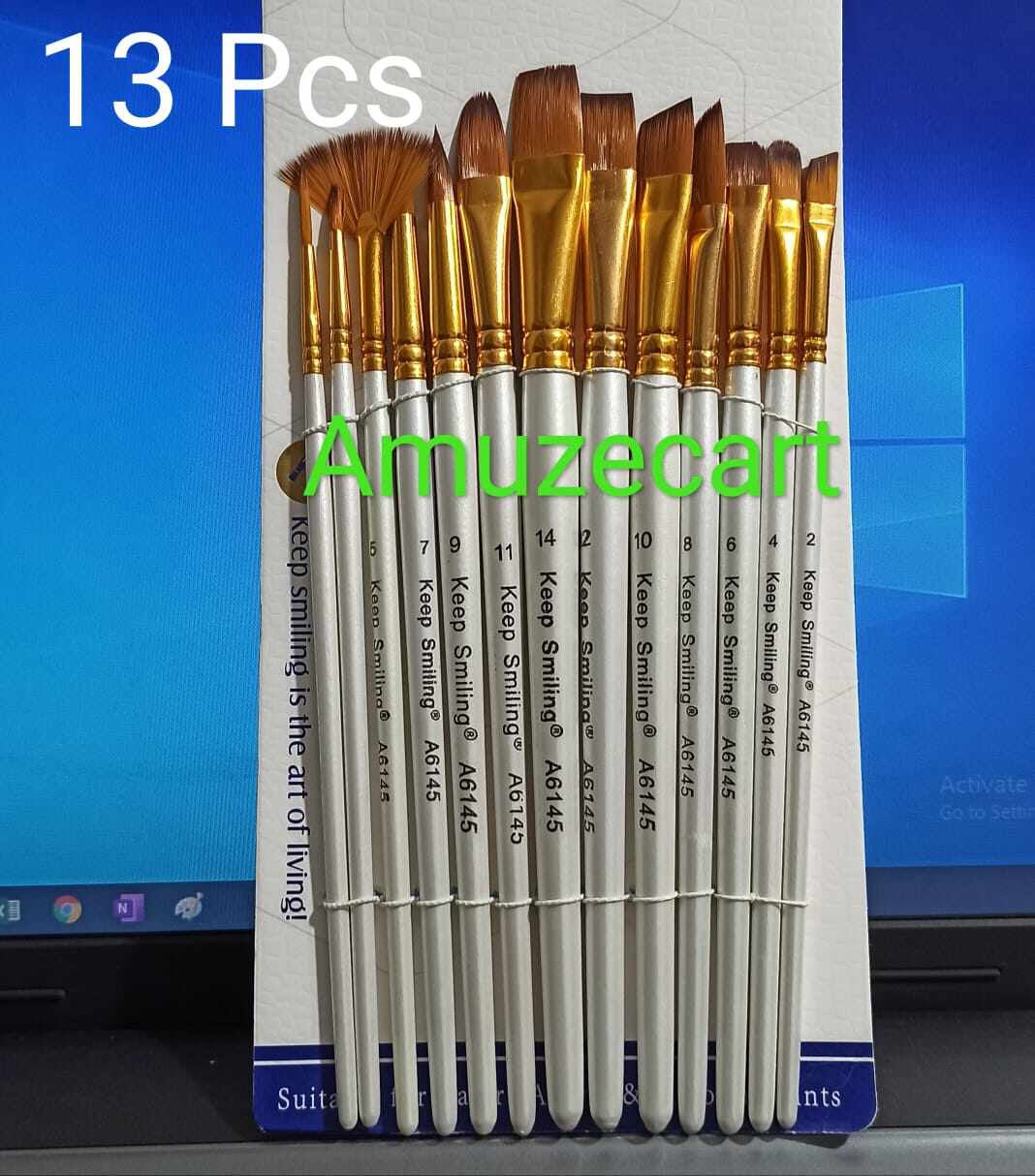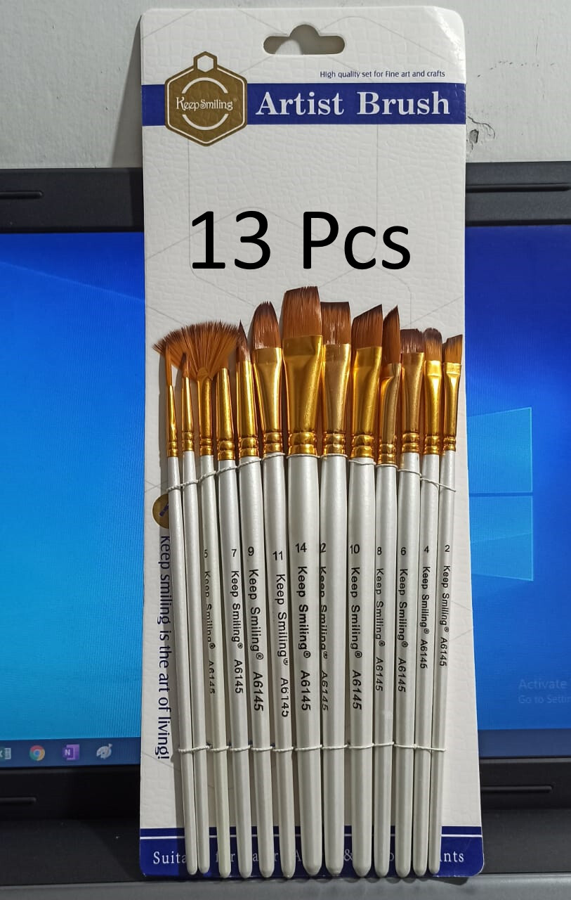 100% Good Quality and made in China. A total of 13 paint brushes, including flat, fan and other shapes for better painting experience. The paintbrushes offer great color control and paint long-wear by hair filaments that hold and release colors smoothly and evenly, making every detail of your brush strokes perfect. With the wooden handle, each paintbrush is comfortable, sturdy, and durable. Made from soft and synthetic nylon material, the bristles of each brush is soft, flexible. Ideal for watercolor, oil, acrylic painting, craft art painting, etc.It can be used with poster color also. Very Easy to Clean.