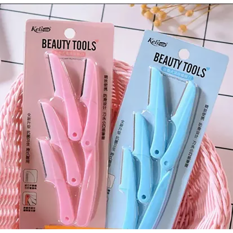 Product details of Keli 4pcs (Blue & Pink) Eyebrow Razor Pack Foldable Eyebrow Facial Hair Removal, Shaper, and Trimmer.