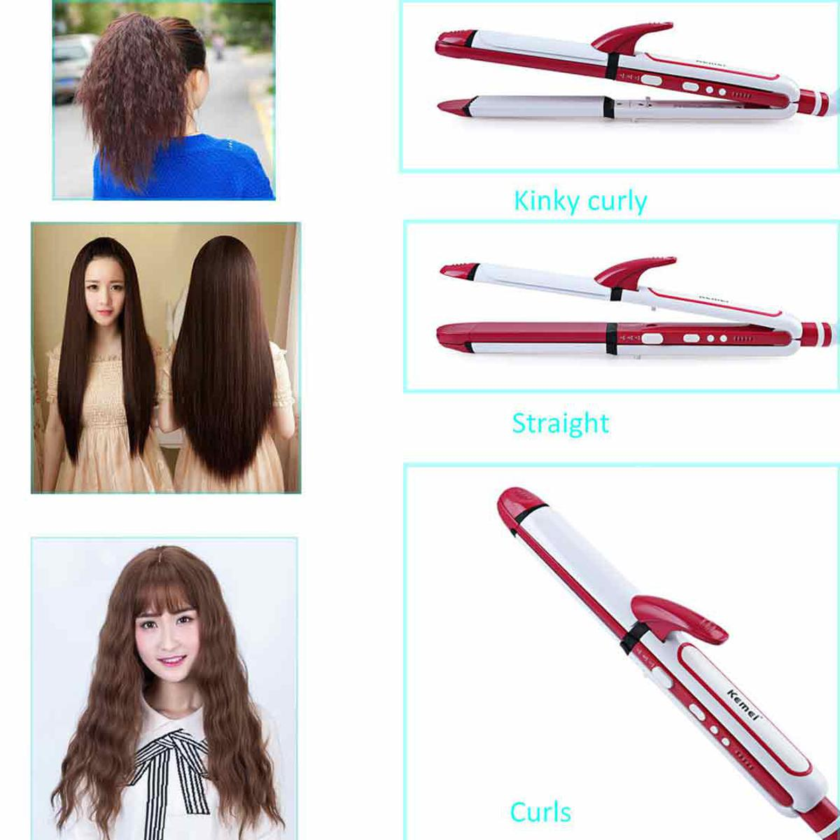 Kemei KM 1291 Ceramic Professional 3 in 1 Electric Hair Straightener Curler Styler and Crimper, Simply straight ceramic Plate quickly heats very high degrees.