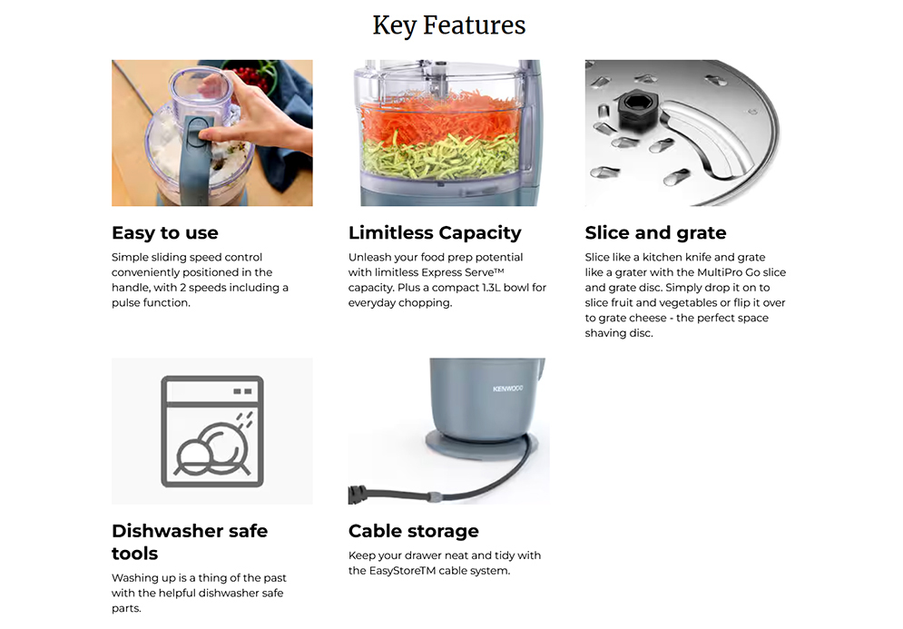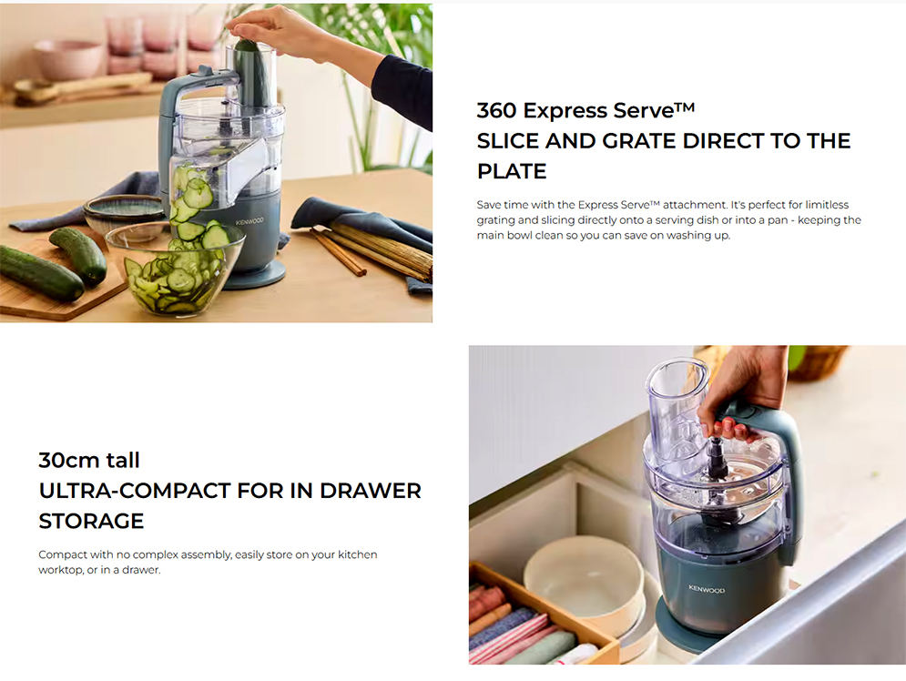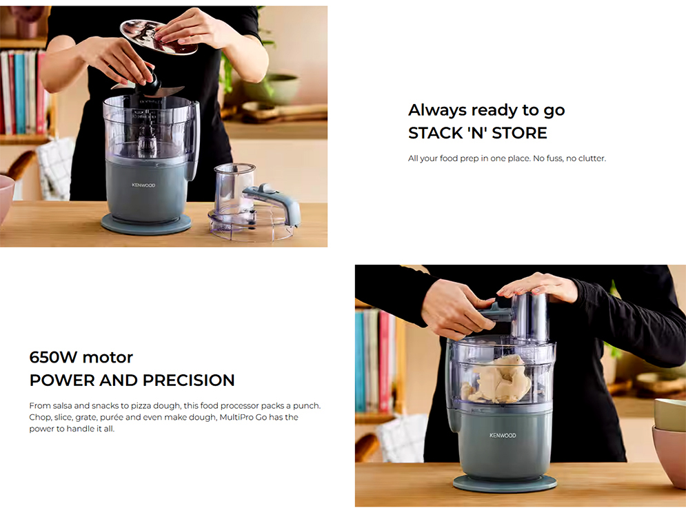 Kenwood FDP22.130GY MultiPro Go Food Processor for Chopping, Cutting, Pureeing and Kneading