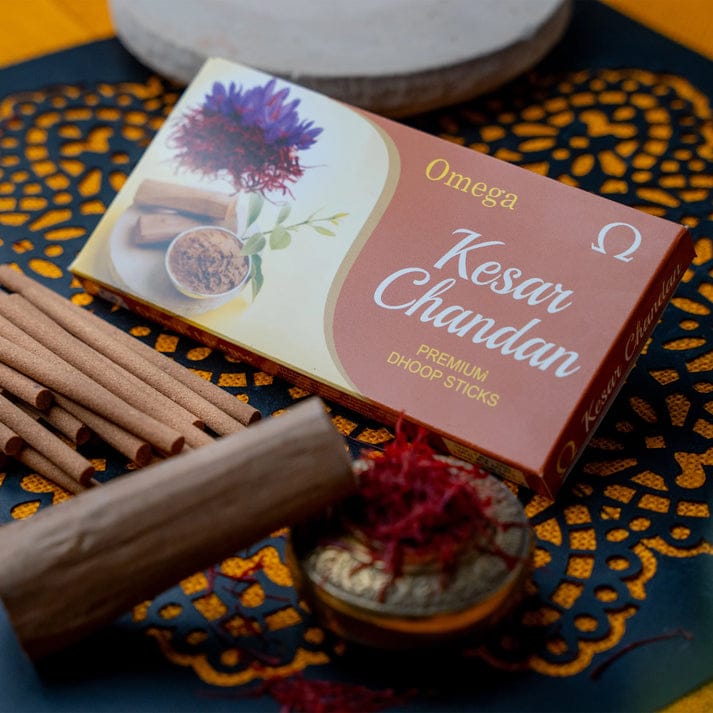 Experience the luxurious and calming aroma of Kesar Chandan Premium Bambooless Dhoop Sticks. Made with natural ingredients and essential oils, these hand-rolled incense sticks are carefully crafted to provide a long-lasting and soothing fragrance. Use them to create a peaceful and relaxing atmosphere in your home or office.