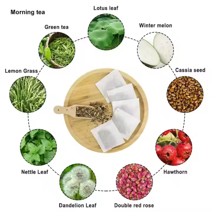 NATURAL INGREDIENTS - MCT oil, Lotus leaf, Winter melon, Cassia seed, Hawthorn, Double red rose, Dandelion Leaf, Nettle Leaf, Lemon Grass, Green tea. Our teas are made from 100% natural ingredients, no scary chemicals. It won't make you run to the restroom like Senna.