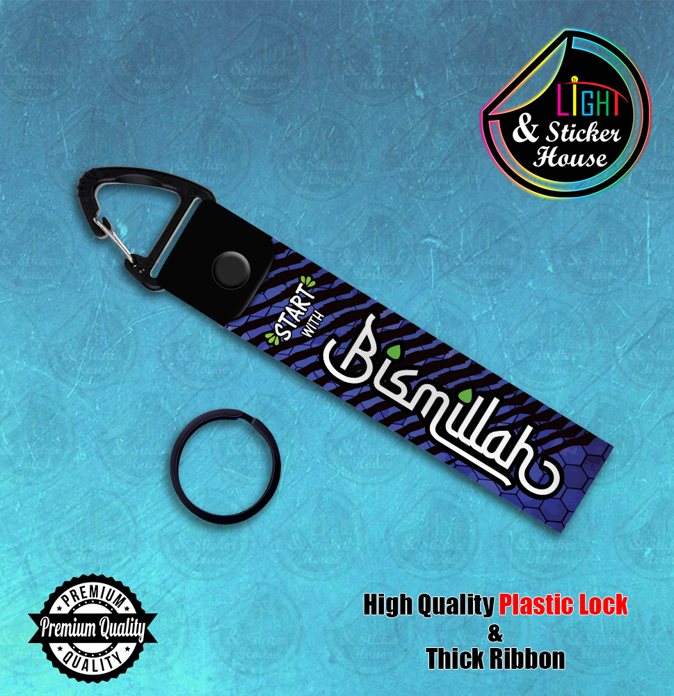 Key ring For Bike user ---- Start With Bismillah_Blue_Straight ---- Premium Quality & Plastic lock (Attachable to keys for bike, car, bag, home, and office keys)