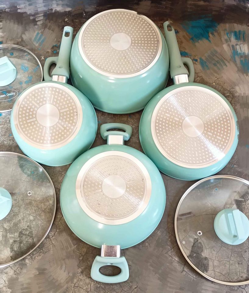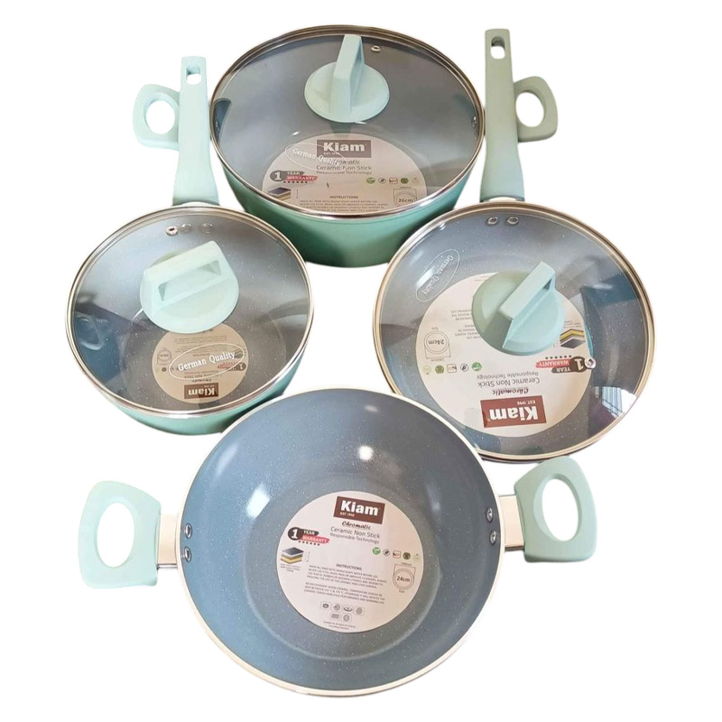Introducing the Kiam 7 Piece Ceramic Granite Non Stick Cookware Set with an induction bottom. This set includes 7 essential pieces, all made of durable aluminium with a ceramic granite non-stick coating. The induction bottom ensures compatibility with various cooktops, while the ergonomic design and easy-to-clean surface make cooking a breeze. Whether you're a seasoned chef or a beginner in the kitchen, this cookware set offers versatility and convenience for everyday cooking needs.