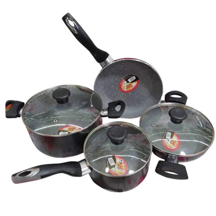Size: Casserol: 24 cm, Fry pan: 24 cm, Karai: 22 cm,Milk pan: 18 cm.