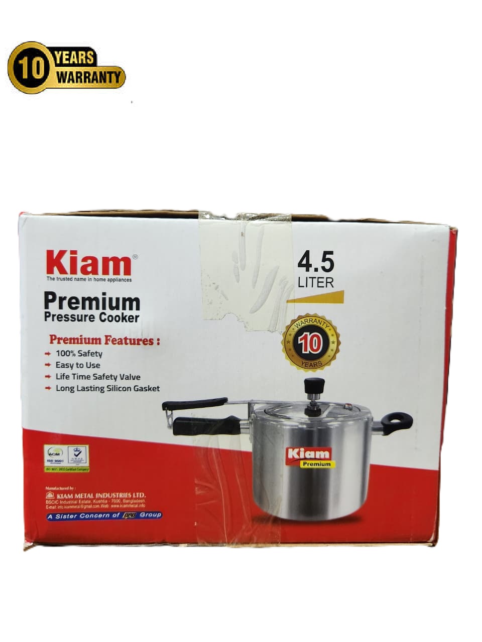 - Bring elegance and strength to your kitchen with the Kiam Premium 4.5L Pressure Cooker. Built from high-quality aluminum with a sleek finish, it delivers performance you can trust for years to come.