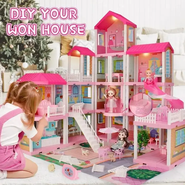 The Dream Villa Play Set is a colorful pretend-play house designed to spark creativity in young children. This set features multiple rooms, furniture pieces, and accessories that allow kids to explore imaginative home-life play.