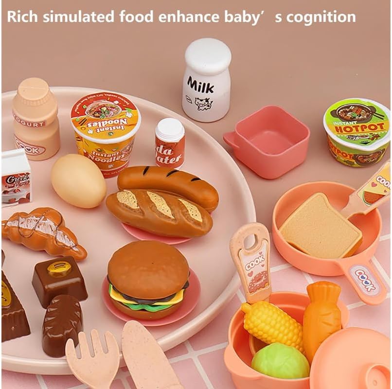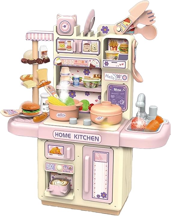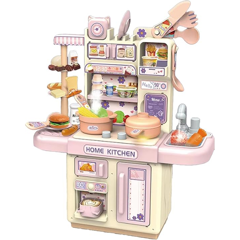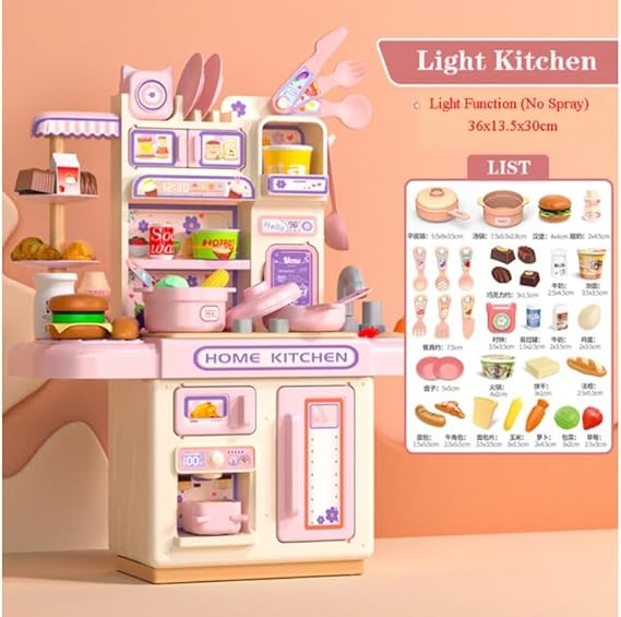 Kitchen Toys with Realistic Steam and Light 39 Piece Kitchen Accessories Set Mini Kitchen Set for Kids Pretend Play Food Toys for Boys Girls Age 3+ (Purple)