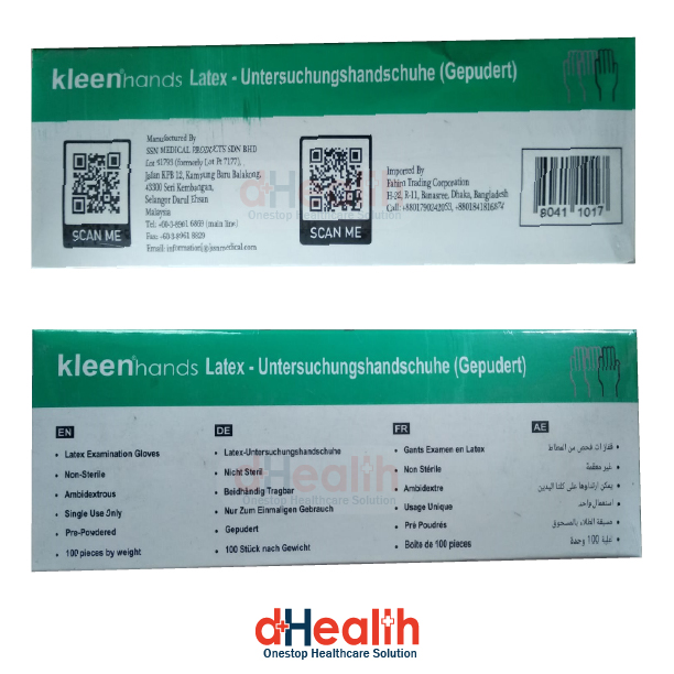 Kleen Hand Latex Examination Gloves (Powdered)Since 1999, SSN Medical Products has been a trusted source in the production of latex products of the highest degree of quality. Our competencies in speciality gloves are designed to meet our customers’ unique requirements and production schedules.At SSN Medical Products, we practise Quality Management, heart and soul. We do it not because it is a requirement but because we believe it will help us deliver our quality pledge and that is “to make sure the needs of our customers are adequately and safely met.”With this in mind, we have put the utmost emphasis in the development of our Quality Assurance Department. The department’s laboratory is well equipped to perform various tests on our products along every stage of the manufacturing process, beginning with the incoming raw materials right up to the pre-shipment stage.No expense has been spared to bring the company’s Quality Management System (QMS) up to international standards. The company’s QMS is currently certified to BS EN ISO 9001 and ISO 13485 standards. All our product specifications are designed to meet and comply with international standards such as ISO 4074, EN455 and ASTM D3577. Besides meeting these standards, we have also obtained numerous product certifications such as CE mark (EU), SABS (South Africa), CFDA (China) and FDA 510K (USA).Currently, more than 60% of our business is in the manufacture of Latex Medical Gloves. However, we focus on Specialty Medical Gloves - ranging from gloves for gynecology to gloves for chemotherapy applications. Head over to our dedicated site for our own brand, to view our range of these gloves. If there is something you are looking for which is not in our range, please let us know and we would be more than glad to manufacture them for you.