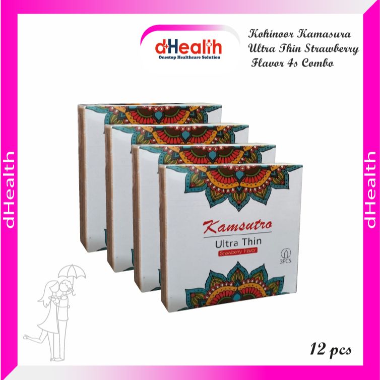 Kohinoor Ultra Thin Strawberry Flavor Condom 4,s Combo Pack (3x4)=12 Pcs