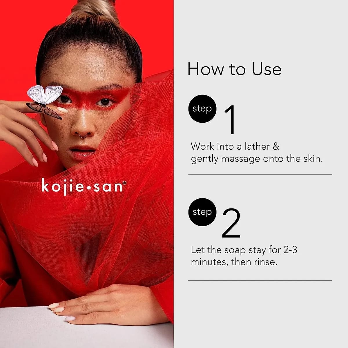 Kojie San skin lightening soap is effective in diminishing dark spots, freckles and acne, streth marks and uneven skin tone. Kojic acid was discovered in Japan. It is a by-product of koji or malted rice used in the production of rice wine. Kojic acid is popularly known for its remarkable whitening effect and antioxidant properties