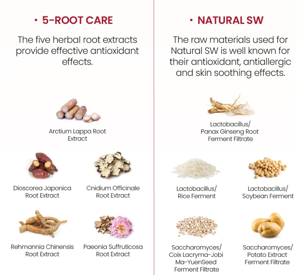 - FERMENTED BEAN - Natural skin-brightening ingredient - Known for antioxidant, anti-allergic, and skin-soothing properties