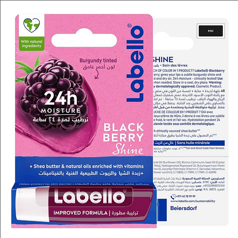 Labello Blackberry Shine Lip Balm with Long-lasting 24H Hydration