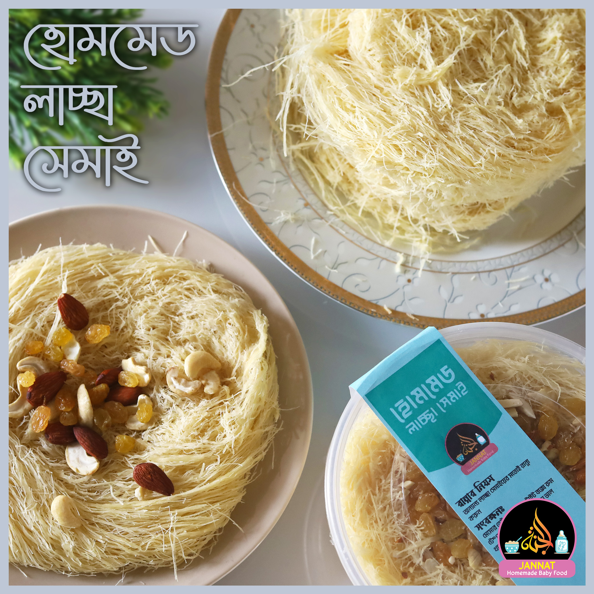 ইনশা আল্লাহ এখন থেকে আর কোন চিন্তা নেই । আমি আপনাদের জন্য এবার নিয়ে এসেছি ১০০% সাস্থ্যকর,হালাল,ক্যামিকেল মুক্ত পরিবেশে ঘিয়ে ভাজা লাচ্ছা সেমাই। আপনি এবং আপনাদের সোনা মনিদের জন্য এই হেলথি ফুড টি খাওয়াতে পারেন।