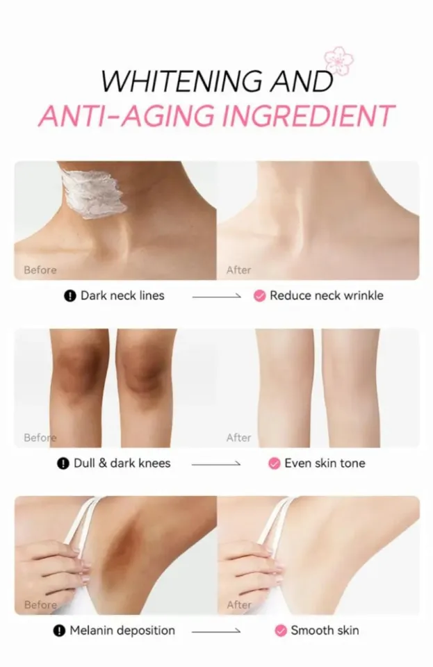 LAIKOU জাপান সাকুরা আন্ডারআর্ম হোয়াইটনিং ক্রিম বডি লোশন বগল হালকা করে কালো দাগ 30gNet: 30gArea: শরীরের ত্বকের বৈশিষ্ট্য 1. জ্বালা মুক্ত এবং দ্রুত অভিনয় underarm সাদা করা 2. সংবেদনশীল ত্বকের লোকেদের জন্য নিরাপদ। 3. কালো দাগ এবং দাগ কমাতে সাহায্য করার জন্য সাকুরা নির্যাস ধারণ করুন কিভাবে ব্যবহার করবেন ত্বক পরিষ্কার করার পর বা বাইরে যাওয়ার আগে ত্বকে ক্রিম লাগান শরীর বা সংবেদনশীল স্থান এবং শোষণ না হওয়া পর্যন্ত আলতো করে ম্যাসাজ করুন। নোট: মুখে ব্যবহার করা যাবে না!