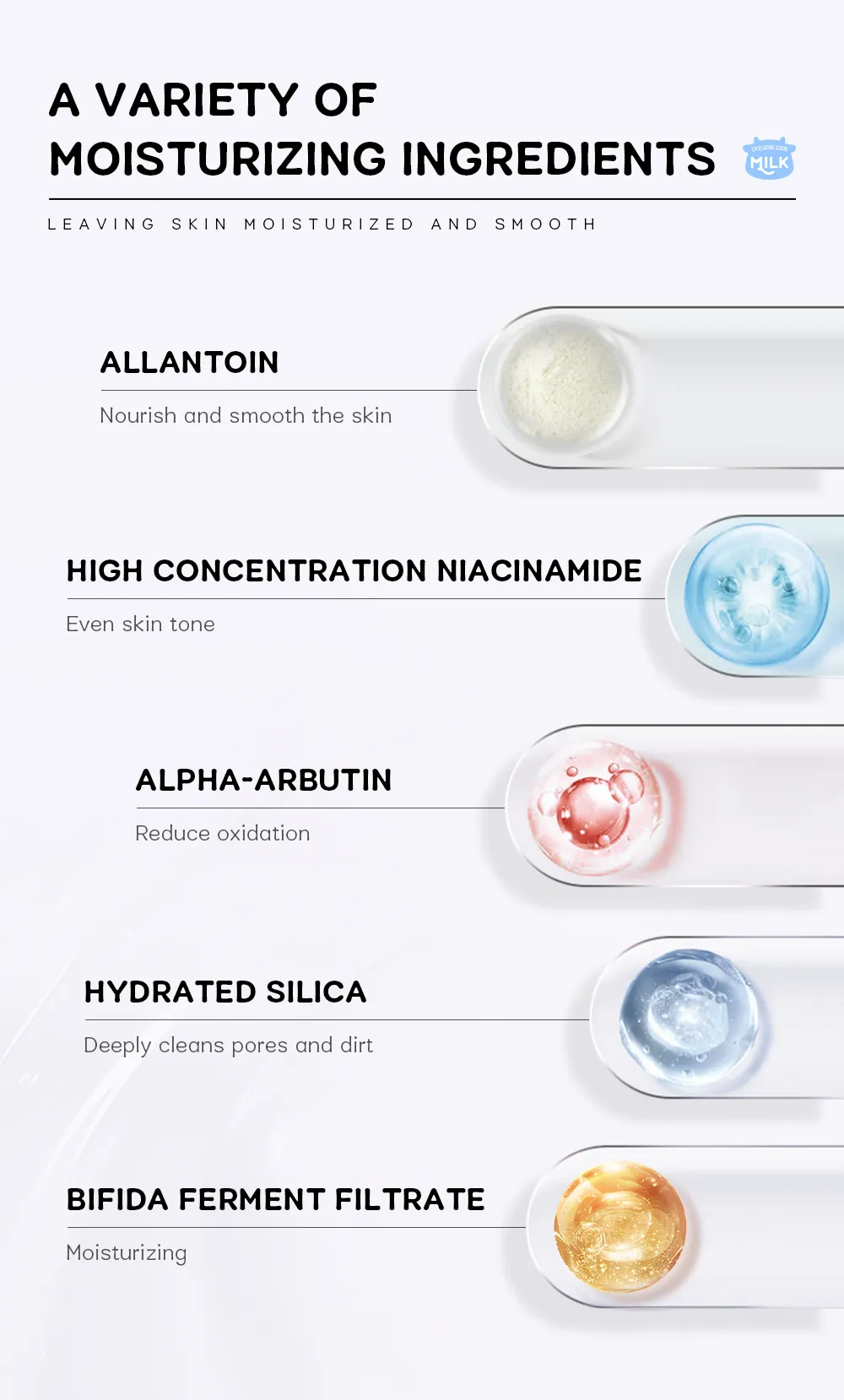 LAIKOU মিল্ক এক্সফোলিয়েটিং স্ক্রাব 90g কিউটিকল মসৃণ এবং উজ্জ্বল ত্বকের টোনকে পরিষ্কার করে মৃত ত্বকের কোষ এবং অমেধ্যকে এক্সফোলিয়েট করে ❀Brand❀ LAIKOU ❀ উৎপত্তি ❀ চীনে তৈরি ❀শেল্ফ লাইফ 5 বছর ❀প্যাকেজ অন্তর্ভুক্ত ❀ প্রিয় LAIKOU সুইটিস, প্রতিটি SKU তে বিভিন্ন পরিমাণে LAIKOU মিল্ক এক্সফোলিয়েটিং স্ক্রাব রয়েছে, অর্ডার দেওয়ার আগে দয়া করে নিশ্চিত করুন, ধন্যবাদ। ❥(^_-) ❀ প্রভাব ❀ ✔ অস্ট্রেলিয়ার দক্ষিণ-পশ্চিম অঞ্চলের খামার থেকে নির্বাচিত এবং উচ্চ-চাপ প্রযুক্তির মাধ্যমে আহরণ করা হয়েছে ✔ উজ্জ্বল এবং তারুণ্যময় বর্ণের জন্য ত্বকে ব্যাপক পুষ্টি প্রদান করতে পারে। ✔ Niacinamide, Bifida Ferment Lysate এবং Alpha-arbutin এর উপাদান দিয়ে সমৃদ্ধ। ✔ ত্বকের মৃত কোষ এবং অমেধ্যকে আলতো করে এক্সফোলিয়েট করতে পারে ✔ নরম এবং এমনকি ত্বকের স্বর, আপনাকে একটি স্বাস্থ্যকর এবং উজ্জ্বল রঙ দেয়। ❀ব্যবহার 1. পরিষ্কার করার পরে, সঠিক পরিমাণে স্ক্রাব নিন এবং বৃত্তাকার গতিতে আপনার ত্বকে আলতো করে ম্যাসাজ করুন। 2. রুক্ষ ত্বকের জন্য, আপনি দীর্ঘ সময়ের জন্য ম্যাসেজ করতে পারেন, তারপর জল দিয়ে ধুয়ে ফেলতে পারেন। ❀সাবধান △ সংবেদনশীল ত্বক ব্যবহারের আগে হাতের ত্বকে পরীক্ষা করা উচিত। যদি জ্বালা অনুভূতি দেখা দেয় তবে এটি ব্যবহার করা বন্ধ করুন। △ এটি শিশুদের নাগালের বাইরে রাখুন △ সঞ্চয়স্থান: এটিকে ঠান্ডা জায়গায় রাখুন এবং সরাসরি সূর্যের এক্সপোজার এড়াতে হবে।