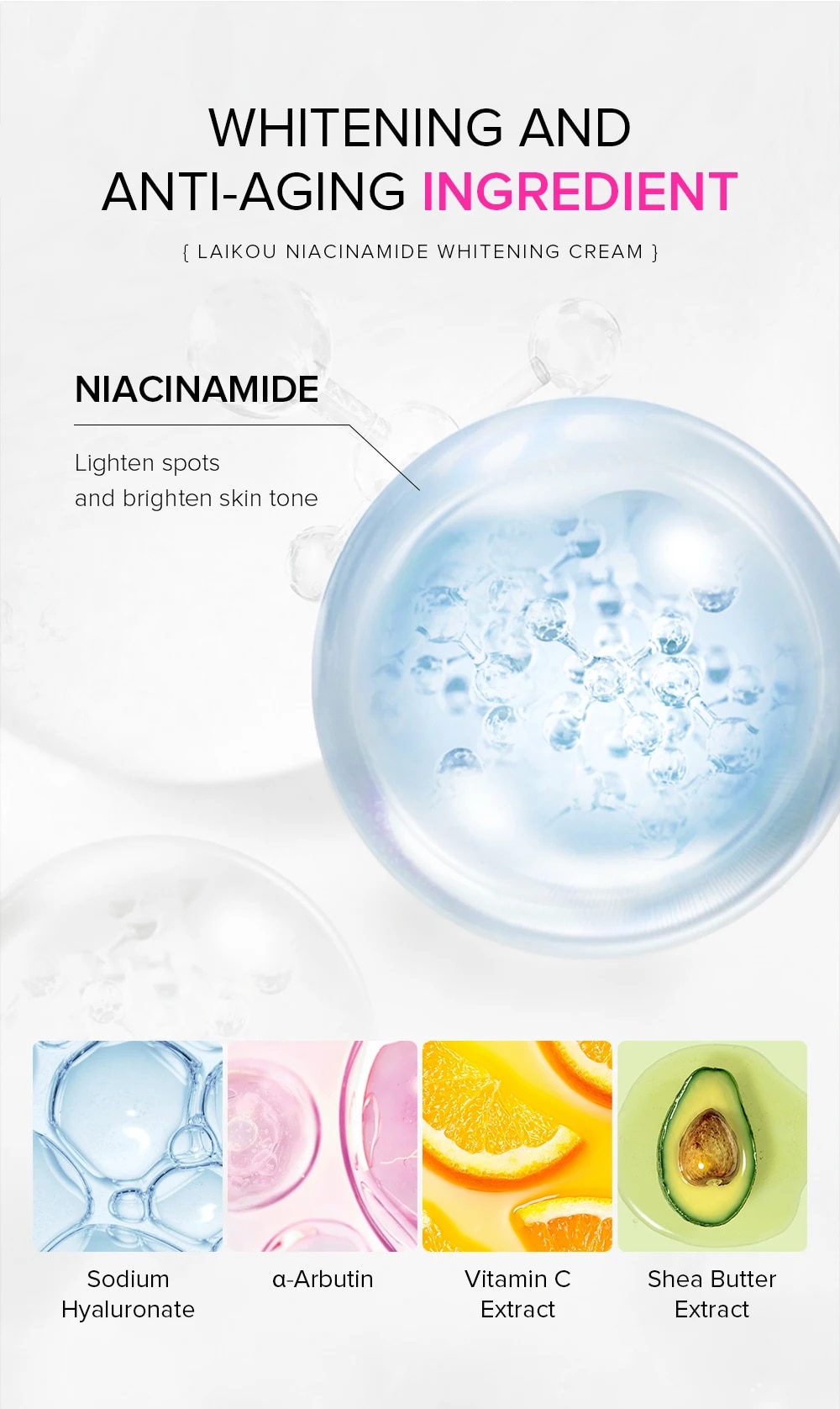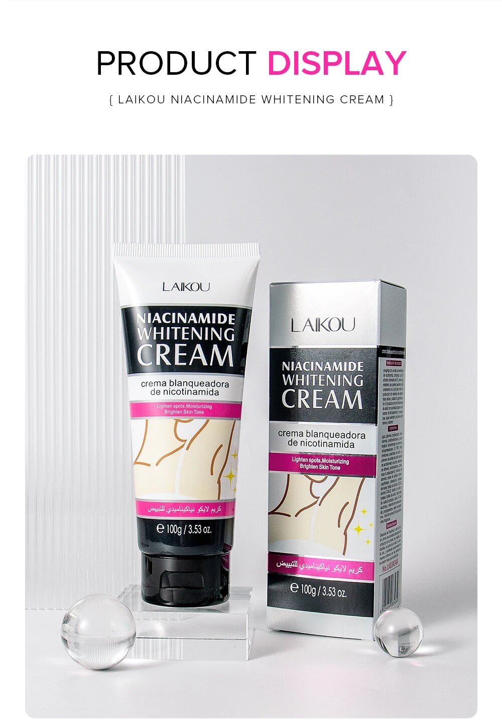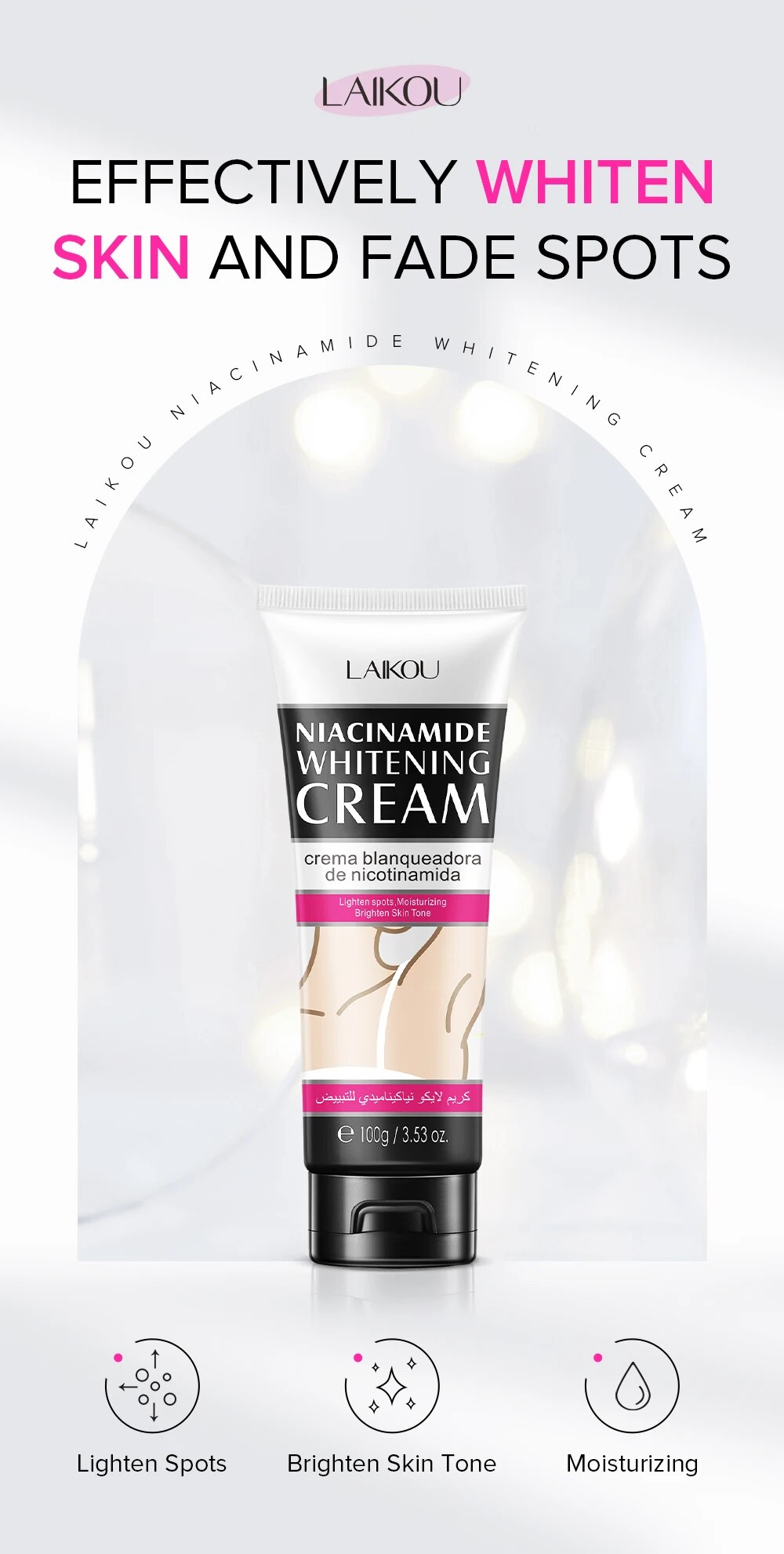 LAIKOU নিয়াসিনামাইড হোয়াইটিং বডি ক্রিম আন্ডারআর্ম নী রিডুস পিগমেন্টেশন 100 গ্রাম নেট: 100 গ্রাম প্রভাব: স্কিন টোন উজ্জ্বল করুন/দাগ হালকা করুন/ময়শ্চারাইজিং প্রধান উপাদান: Niacinamide, Sodium Hyaluronate, Alpha-Arbutin বৈশিষ্ট্য 1. বিপাক ত্বরান্বিত করুন নিয়াসিনামাইডে ছোট অণু থাকে, যা ত্বকের কোষের বিপাককে ত্বরান্বিত করতে পারে এবং বলিরেখা মসৃণ করে। 2. কোলাজেন সংশ্লেষণ প্রচার করুন এটি কোলাজেনের সংশ্লেষণকে উন্নীত করতে পারে এবং ত্বকের স্থিতিস্থাপকতা পুনরুদ্ধার করতে পারে 3. এন্টি-গ্লাইকেশন প্রভাব এটি গ্লাইকেশন প্রতিরোধ করতে পারে যাতে দাগ রোধ করতে পারে এবং ত্বকের নিস্তেজতা কমাতে পারে। 4. বিবর্ণ দাগ নিয়াসিনামাইড মুক্ত র্যাডিকেলগুলিকে মেরে ফেলতে পারে, গাঢ় দাগ এবং এমনকি ত্বকের টোনকে হালকা করতে পারে। কিভাবে ব্যবহার করে পরিষ্কার করার পরে, ত্বকে ক্রিমটি লাগান এবং এটি শোষিত না হওয়া পর্যন্ত আলতোভাবে ম্যাসাজ করুন। প্যাকেজ: 1 x নিয়াসিনামাইড হোয়াইটনিং বডি ক্রিম