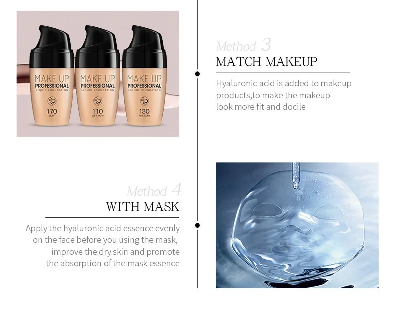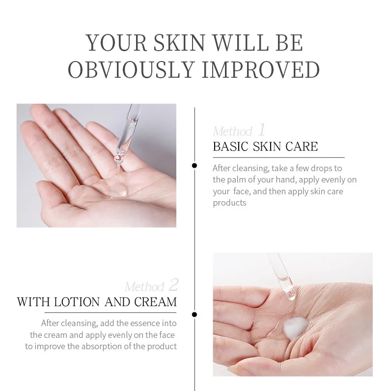 Apply the hyaluronic acid essence evenly on the face before you using the mask, improve the dry skin and promote the absorption of the mask essence.