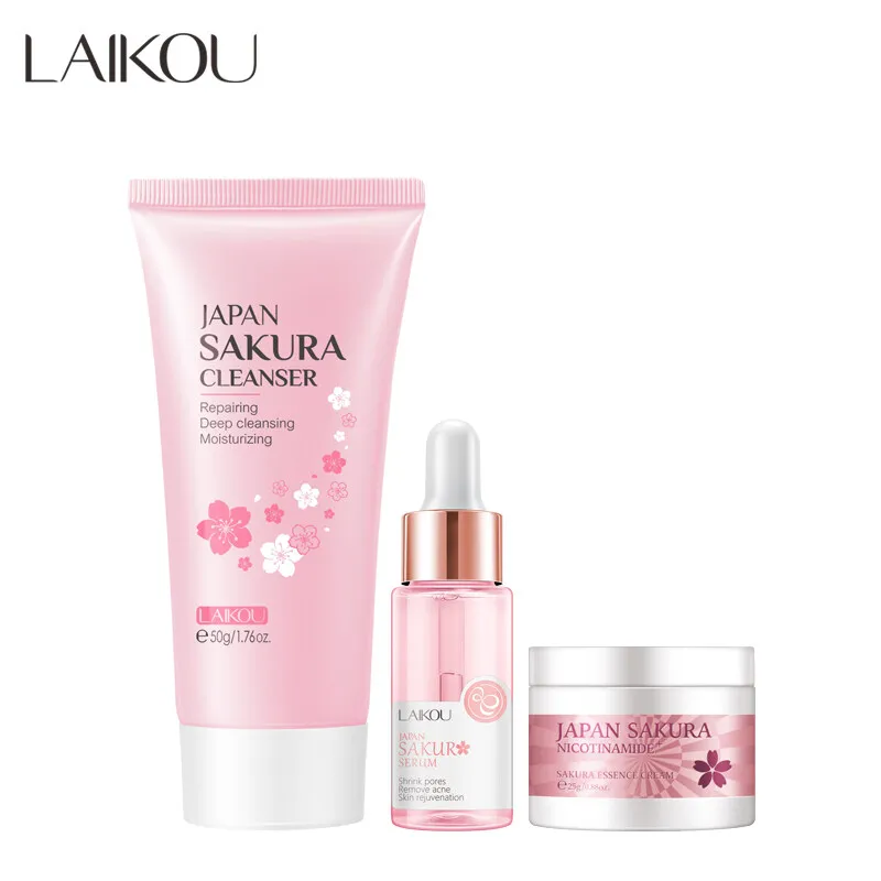 ব্র্যান্ড: LAIKOU শেলফ লাইফ: 3 বছর সব ধরনের ত্বকের জন্য উপযুক্ত প্যাকেজে রয়েছে: 50 গ্রাম ক্লিনজার + 17 মিলি সাকুরা সিরাম + 25 গ্রাম ফেস ক্রিম লজিস্টিক: 3-5 দিন প্রভাব এটি ত্বককে উজ্জ্বল করতে পারে এবং ত্বকের বার্ধক্যের প্রাথমিক লক্ষণগুলিকে ধীর করে দিতে পারে। ময়েশ্চারাইজিং এবং পুষ্টিকর শুষ্ক ত্বক ছিদ্র পরিষ্কার করুন এবং সঙ্কুচিত করুন আপনার ত্বক পরিষ্কার এবং উজ্জ্বল করে তোলে গভীরভাবে পরিষ্কার করুন এবং ময়লা, গ্রীস এবং মৃত ত্বকের কোষগুলি অপসারণ করুন ব্যবহার 1. আপনার মুখ ধোয়ার জন্য সঠিক পরিমাণে ক্লিনজার নিন 2.চোখের জায়গাগুলি এড়িয়ে মুখের উপর সিরামের কয়েক ফোঁটা লাগান, এটি শোষিত না হওয়া পর্যন্ত সামান্য চাপ দিন 3. পুরো মুখে সমানভাবে ফেস ক্রিম লাগান