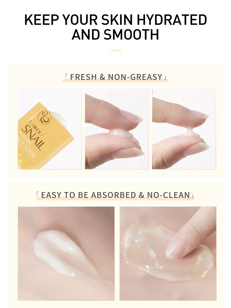 ত্বককে গভীরভাবে পুষ্ট করে এবং তাৎক্ষণিকভাবে পুষ্টির পরিপূরন করে একটি তেল নিয়ন্ত্রণ ক্রিম, ত্বকের জন্য তেল এবং জলের ভারসাম্য ত্বকের যত্নে জ্বালাপোড়া না করে এমন উপাদান। শামুকের শ্লেষ্মা নিঃসরণ কার্যকরভাবে ত্বকের বার্ধক্য প্রতিরোধ করতে পারে এবং দাগ, দাগ এবং ব্রণ দূর করে। শামুক শ্লেষ্মা-ধারণকারী নিঃসরণে দৃঢ় প্রভাবের একটি রাসায়নিক গঠন রয়েছে। এটি আপনার ত্বকে স্থিতিস্থাপকতা এবং দৃঢ়তা পুনরুদ্ধার করবে, পাশাপাশি বলিরেখা, সূক্ষ্ম রেখার উপস্থিতি হ্রাস করবে। আপনার মুখ পরিষ্কার করার পরে, চোখের জায়গাগুলি এড়িয়ে মুখে যথাযথ পরিমাণে এই ক্রিমটি নিন। এটি শুষে না হওয়া পর্যন্ত আলতোভাবে ম্যাসাজ করুন। পরের দিন সকালে ধুয়ে ফেলুন।