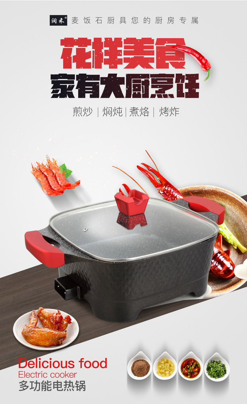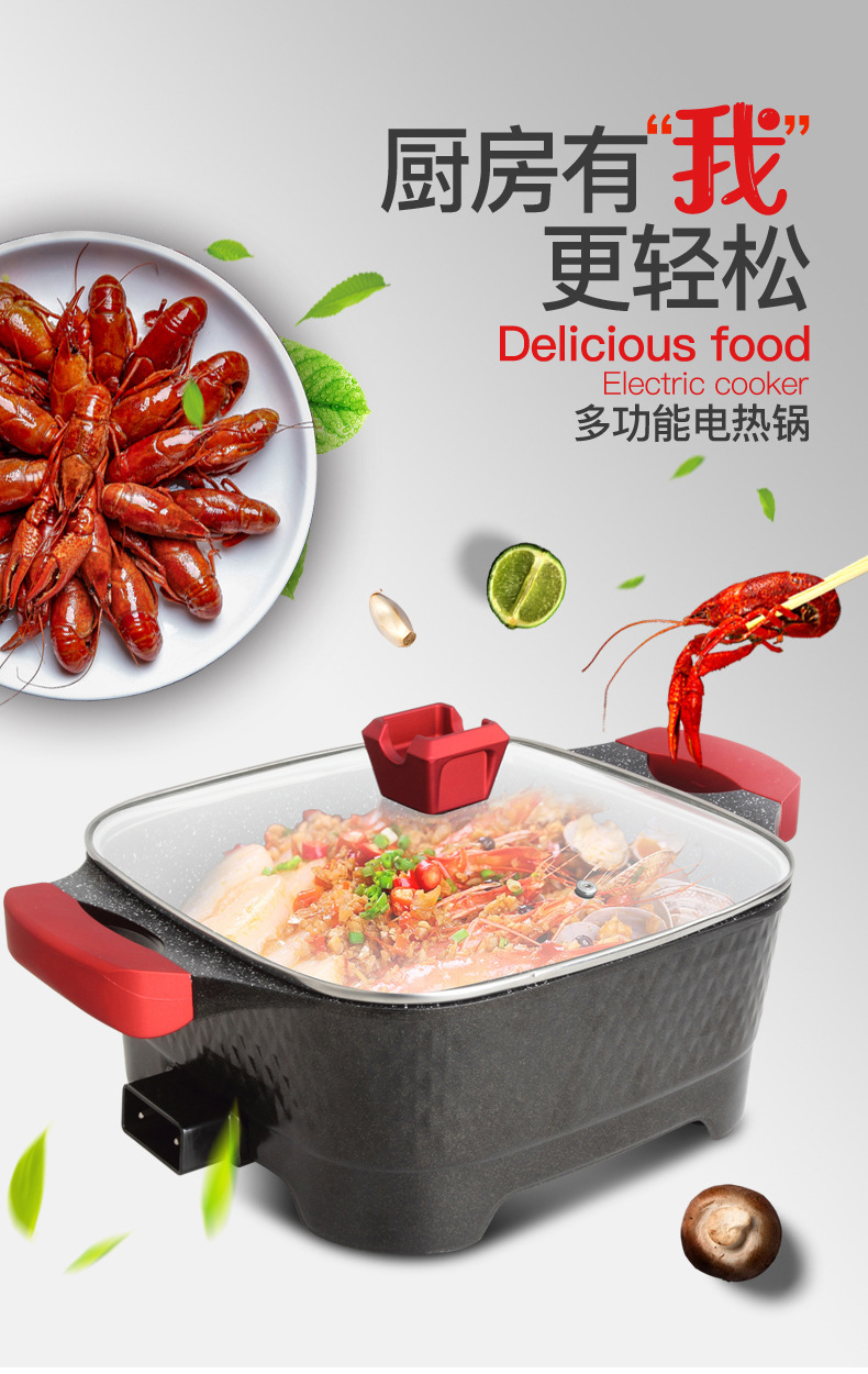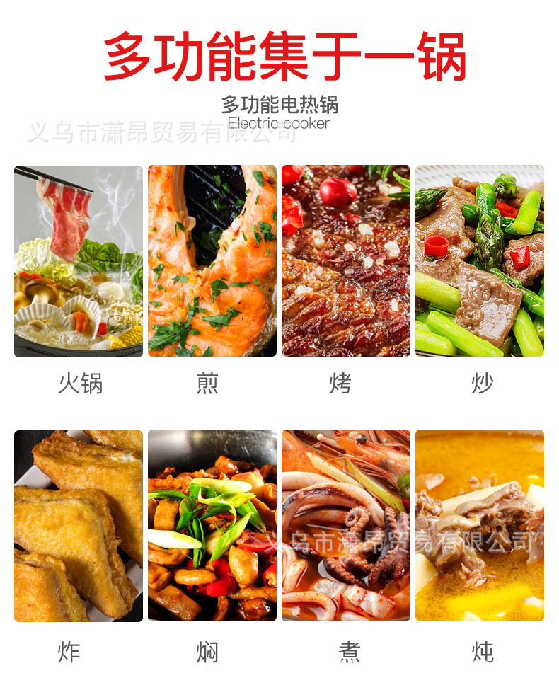 Electric heating/hot pot function steamed, fried, fried, fried, boiled, stewed, stewed, hot pot, teppanyaki