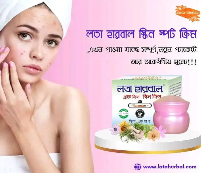 লতা হারবাল স্কিন স্পট ক্রিম হলো একটি ভেষজ ক্রিম যা ত্বকের কালো দাগ, ব্রণ, মেছতা এবং পিগমেন্টেশন কমাতে সাহায্য করে, ত্বককে উজ্জ্বল ও মসৃণ করে তোলে এবং প্রাকৃতিক উপাদানে সমৃদ্ধ। এটি সাধারণত রাতে ব্যবহার করার পরামর্শ দেওয়া হয়, যেখানে ফেসওয়াশ দিয়ে মুখ পরিষ্কার করে হালকা হাতে ক্রিমটি প্রয়োগ করতে হয়। এটি ছেলে ও মেয়ে উভয়ের জন্য উপযোগী এবং ত্বকের স্বাভাবিক উজ্জ্বলতা ধরে রাখতে সহায়ক।