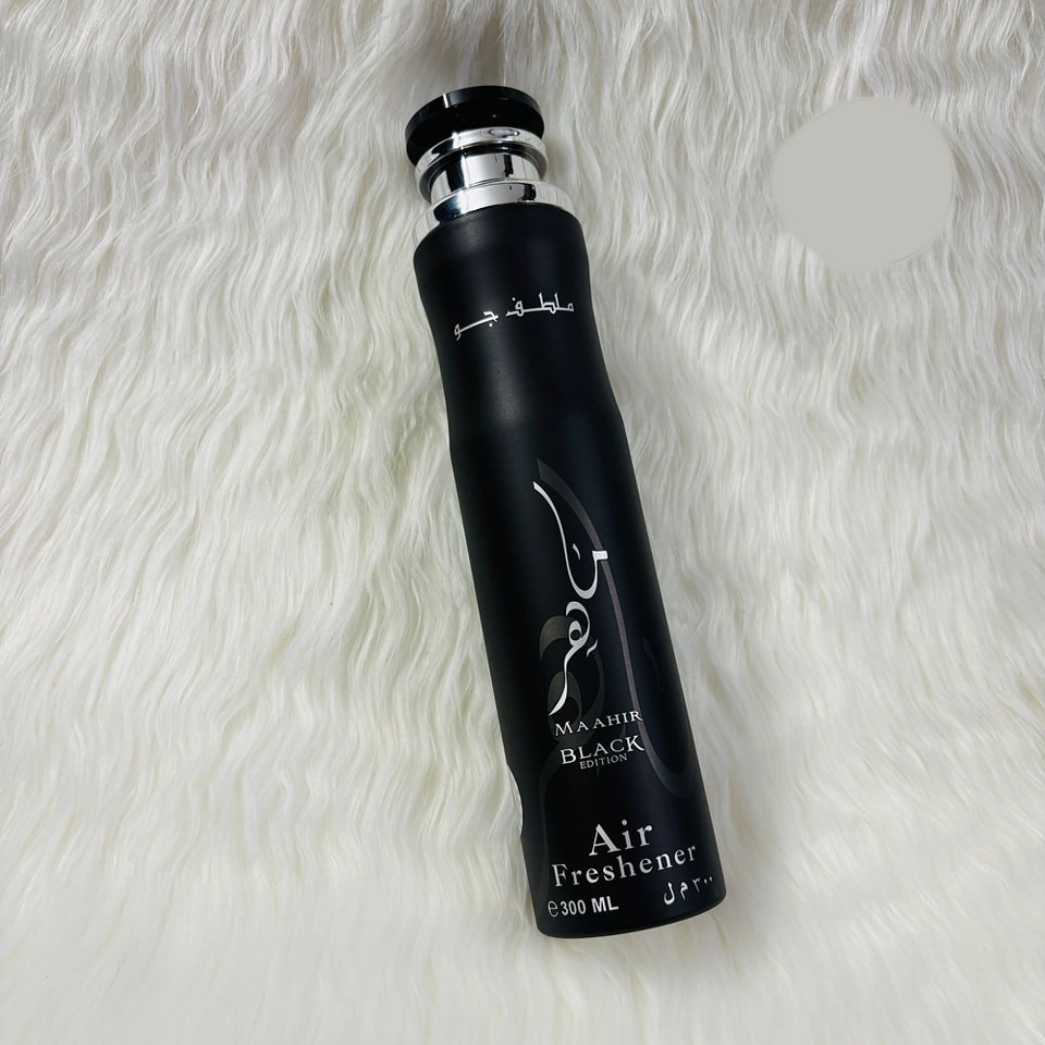 Explore Lattafa Maahir Black Edition Air Freshener (U.A.E) - 300ml Fragrance. Indulge in a sweet rose oud fragrance.