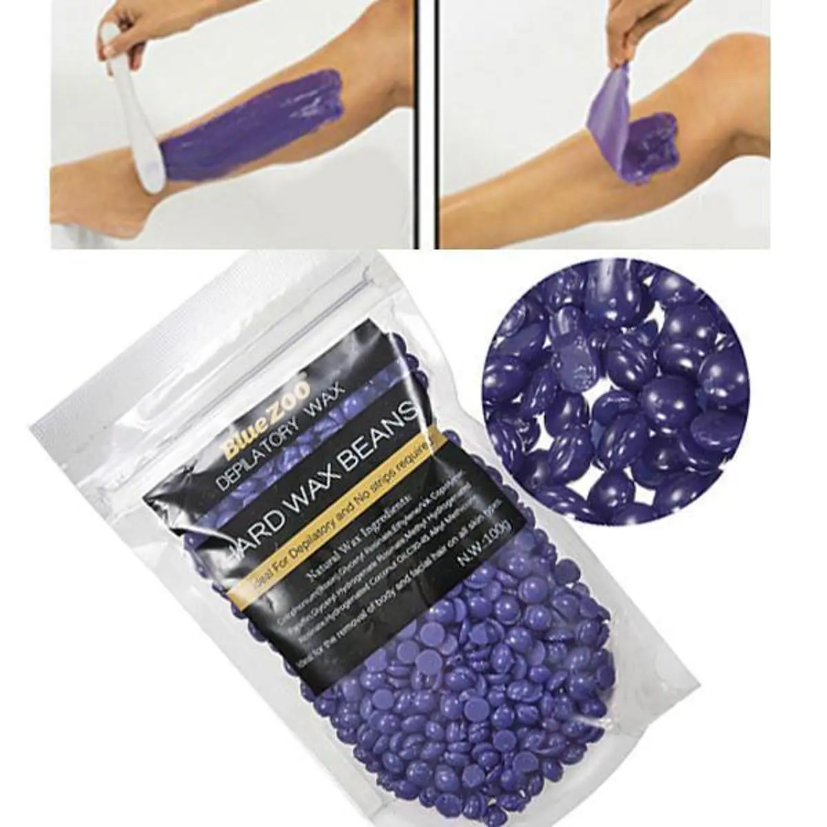 1. Take appropriate amount of wax beans into a depilatory wax heater to melt.2. Heat the wax to a melting temperature, after the wax melted, spread a layer of wax with a spatula on the skin along the direction of the hair growth.3.When the wax becomes cool, hard and holds the skin taut, remove the wax with a firm action against the direction of the hair growth quickly and strongly.