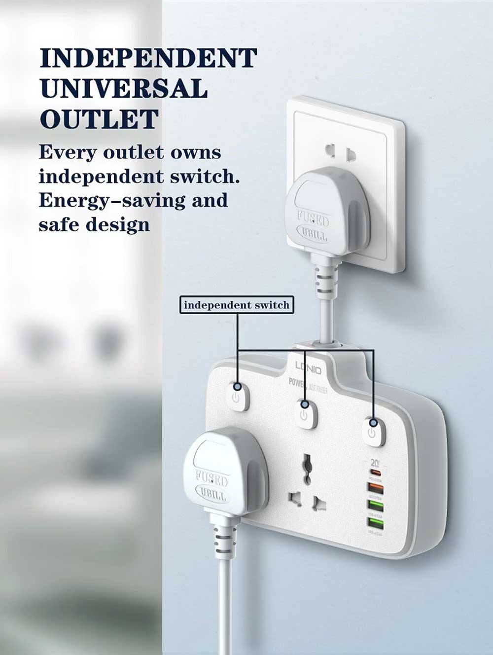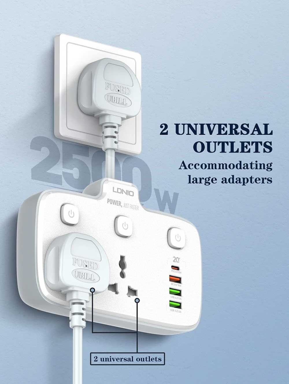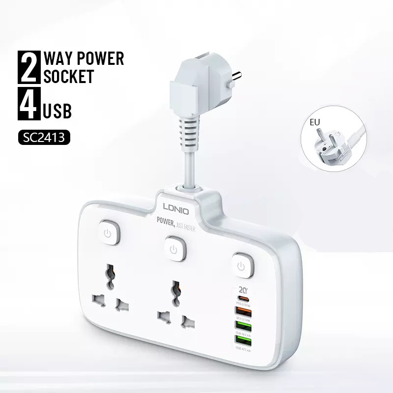 LDNIO SC2413 PD & QC3.0 2 Universal Outlets Power Socket