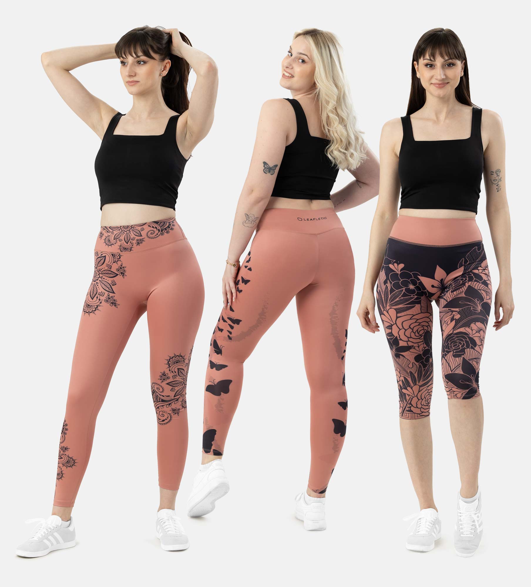 Leafletic Premium Stretch High Waisted Soft Skin Polyester Floral Printed Legging - 3 Piece Combo