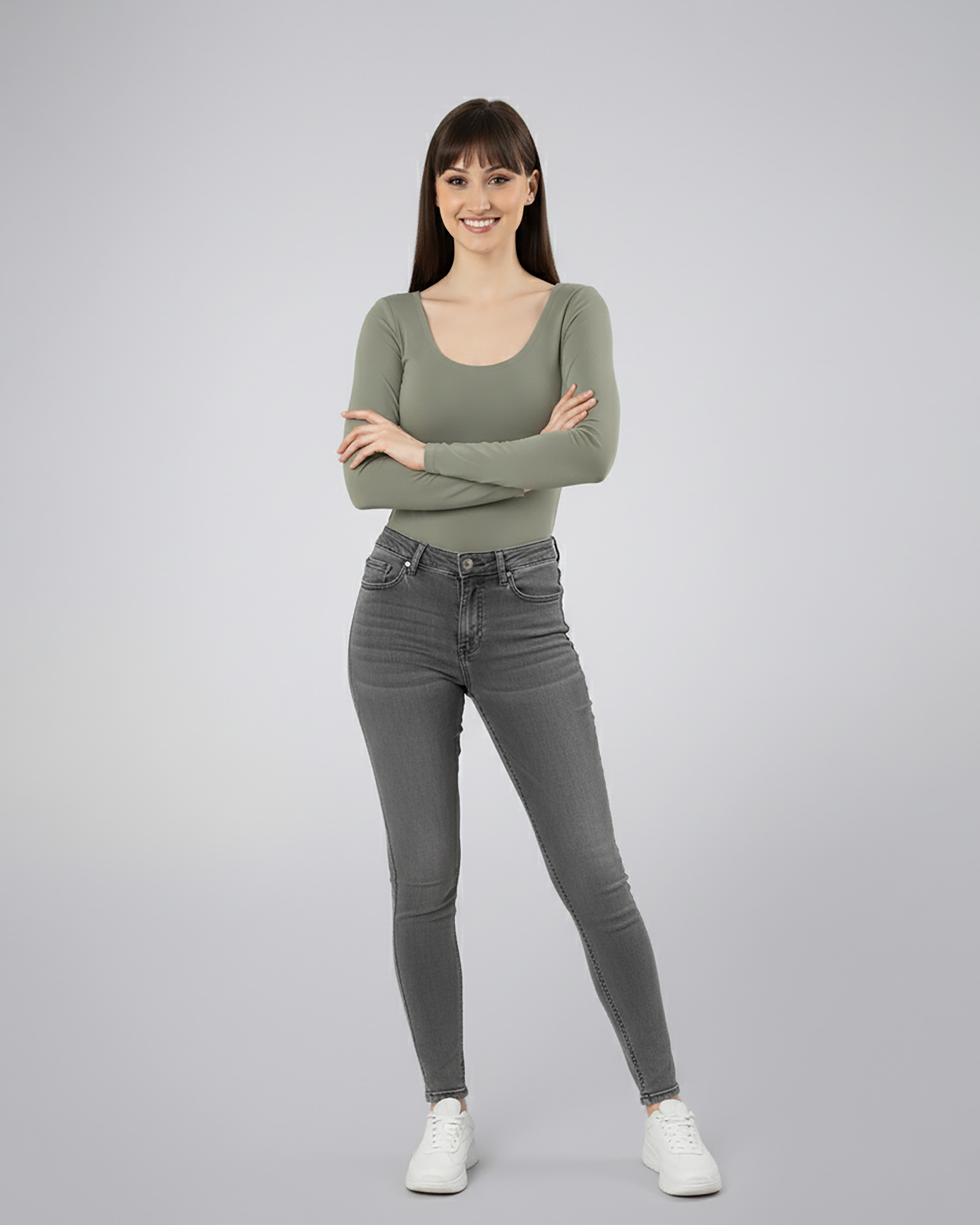 Embrace effortless elegance with our Ladies Long Sleeve Bodysuit. Perfectly tailored for any occasion, this essential piece is the epitome of comfort and style, ensuring you look and feel your best, wherever life takes you.
