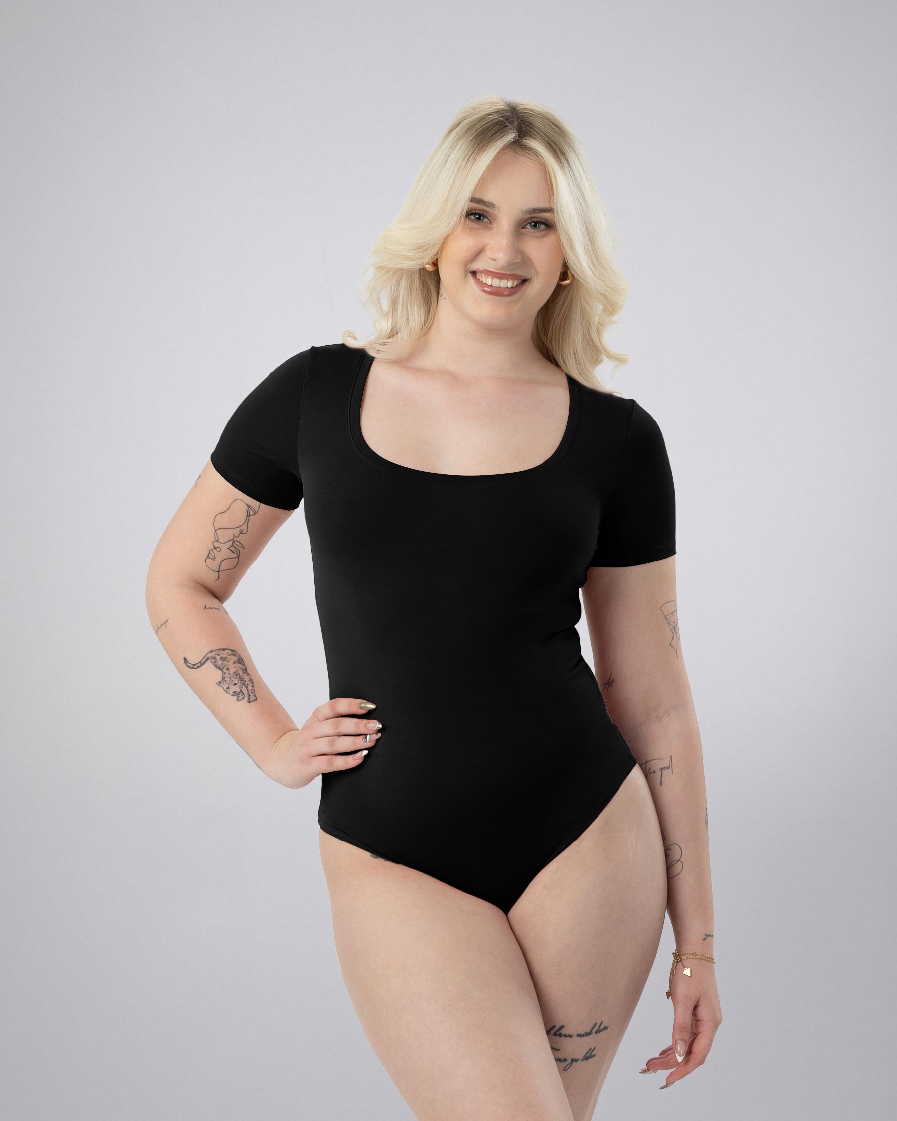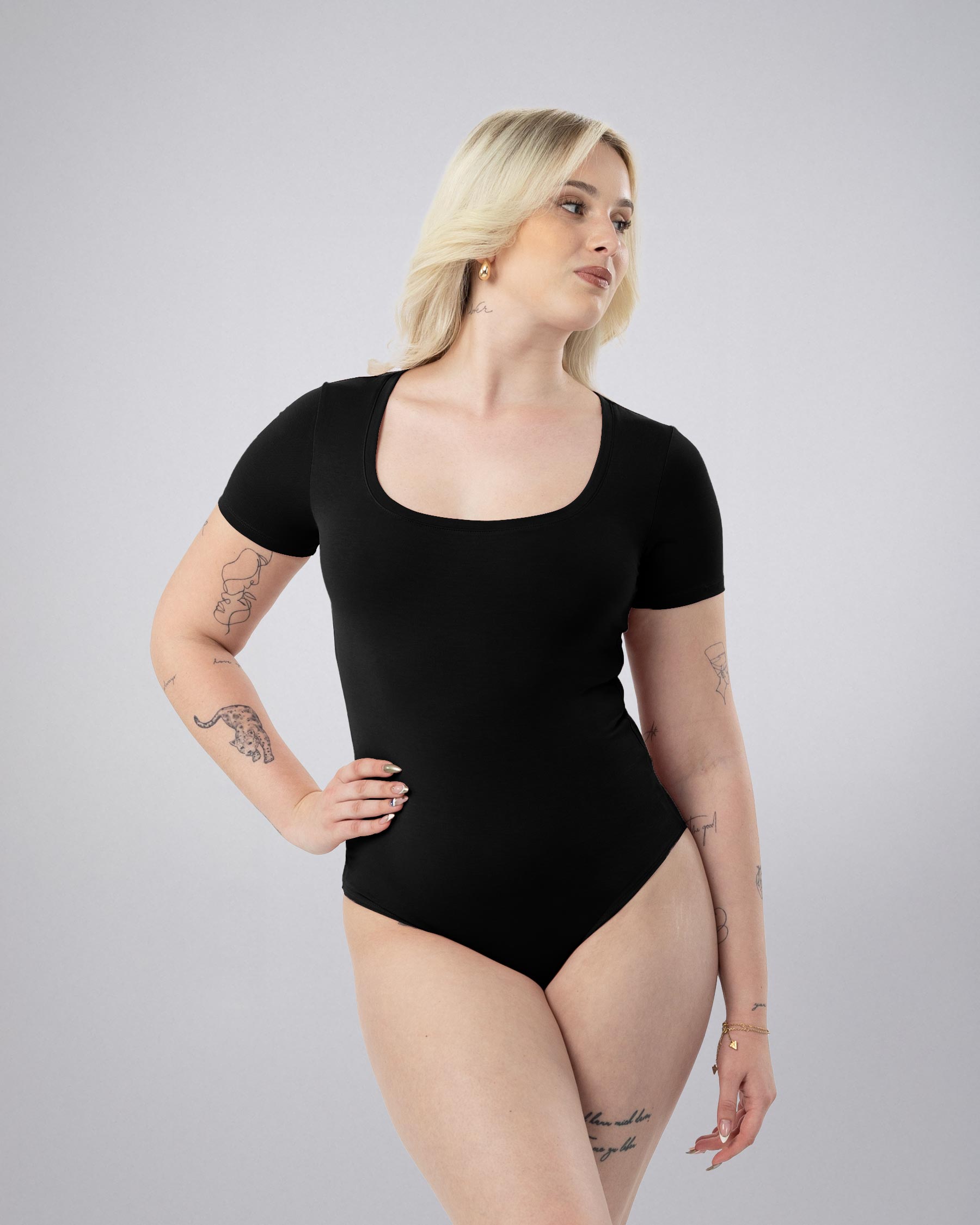 Leafletic Premium Women’s Bodysuit – Short Sleeve, Soft Stretch Fabric | Slim Fit One-Piece for Casual, Office or Layering | Lightweight, Breathable & Comfortable Daily Wear Bodysuit | Stylish Basic Top