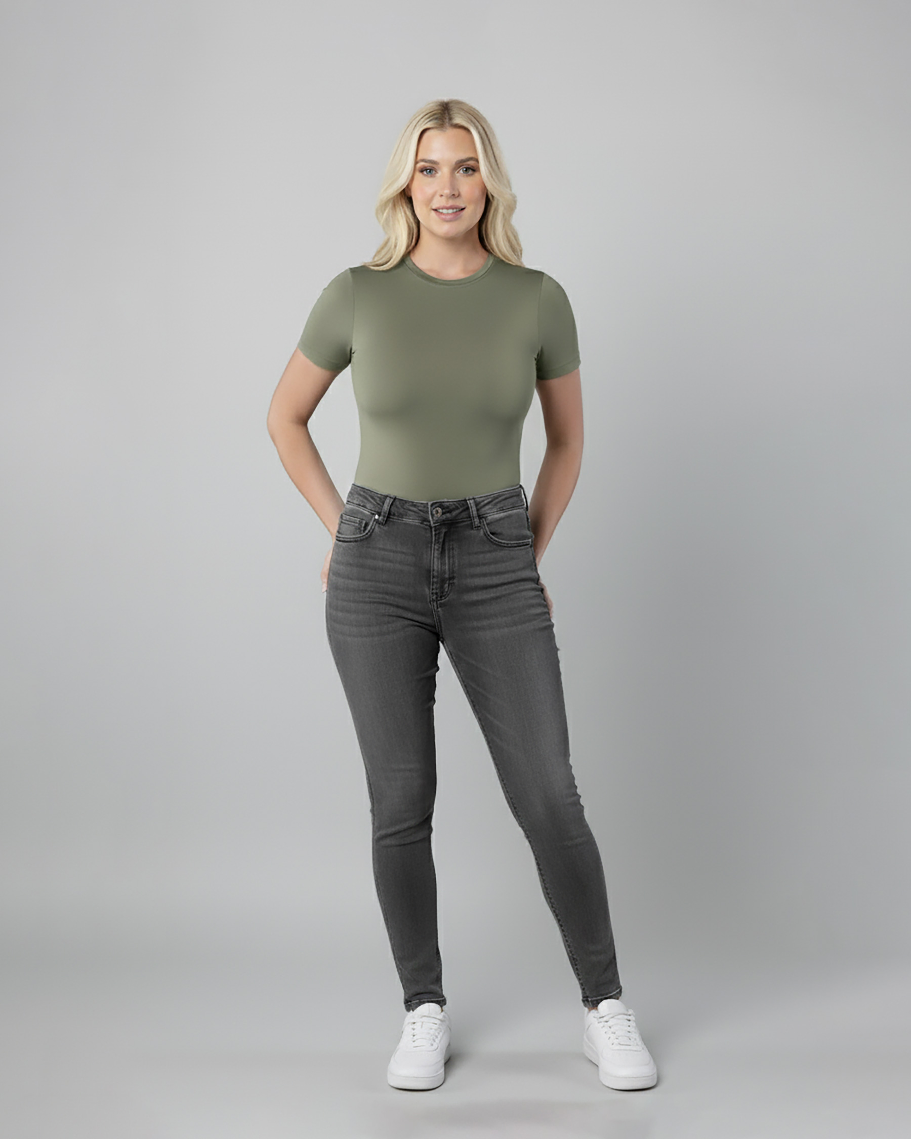 Leafletic Premium Women’s Bodysuit – Short Sleeve, Soft Stretch Fabric | Slim Fit One-Piece for Casual, Office or Layering | Lightweight, Breathable & Comfortable Daily Wear Bodysuit | Stylish Basic Top