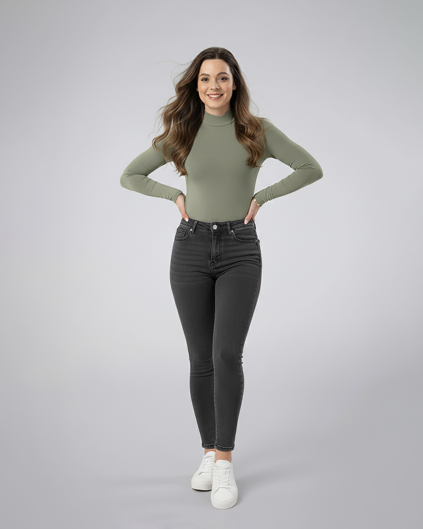 Leafletic Premium Women’s High Neck Bodysuit – Long Sleeve, Soft Stretch Fabric | Slim Fit One-Piece for Casual, Office or Layering | Lightweight, Breathable & Comfortable Daily Wear Bodysuit | Stylish Basic Top
