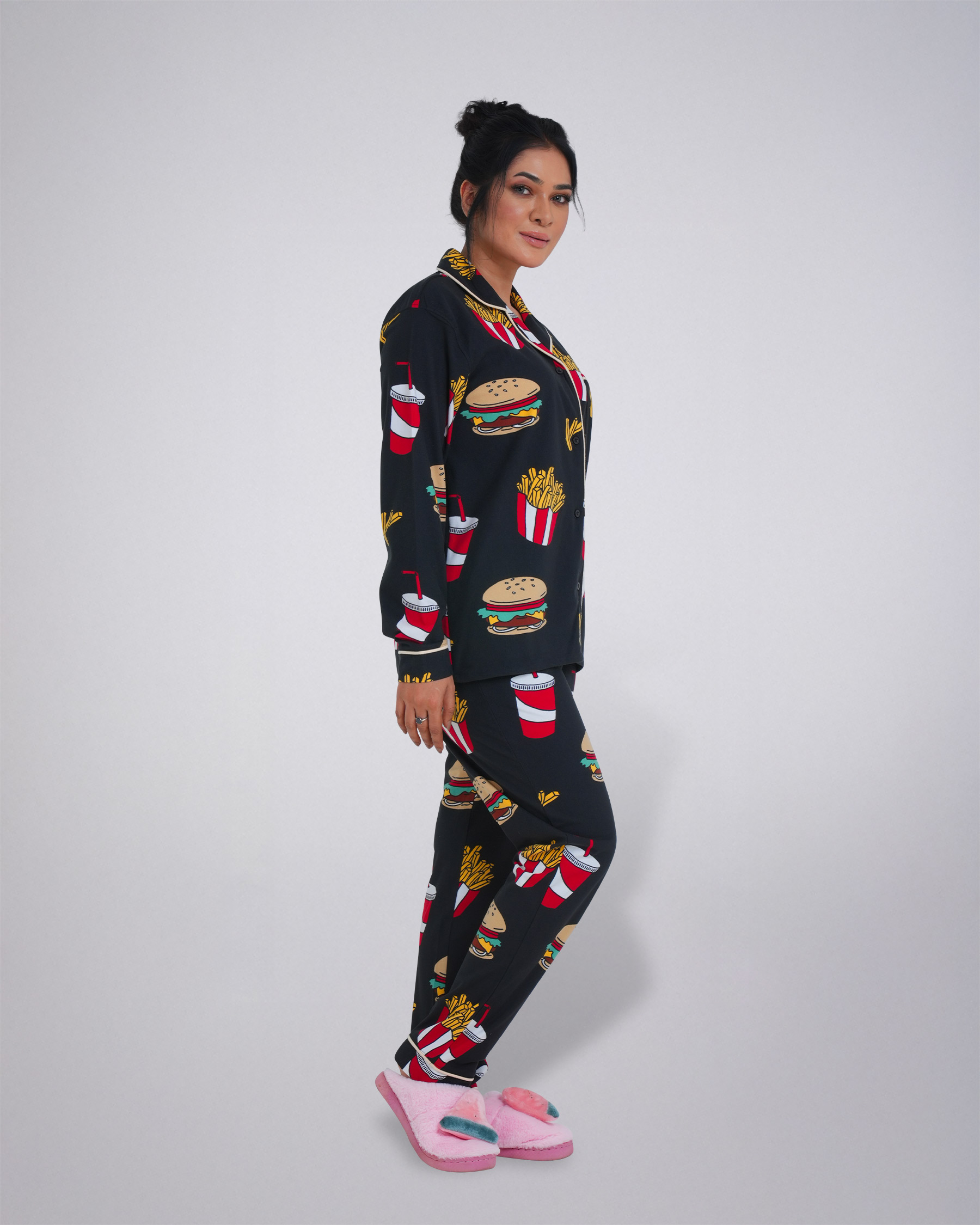 Leafletic Women's All-Over Print Sleepwear Set | Long-Sleeve Button-Down Shirt & Matching Trousers | Soft & Comfortable Nightwear | Loungewear Pajama Set | Two-Piece Night Suit
