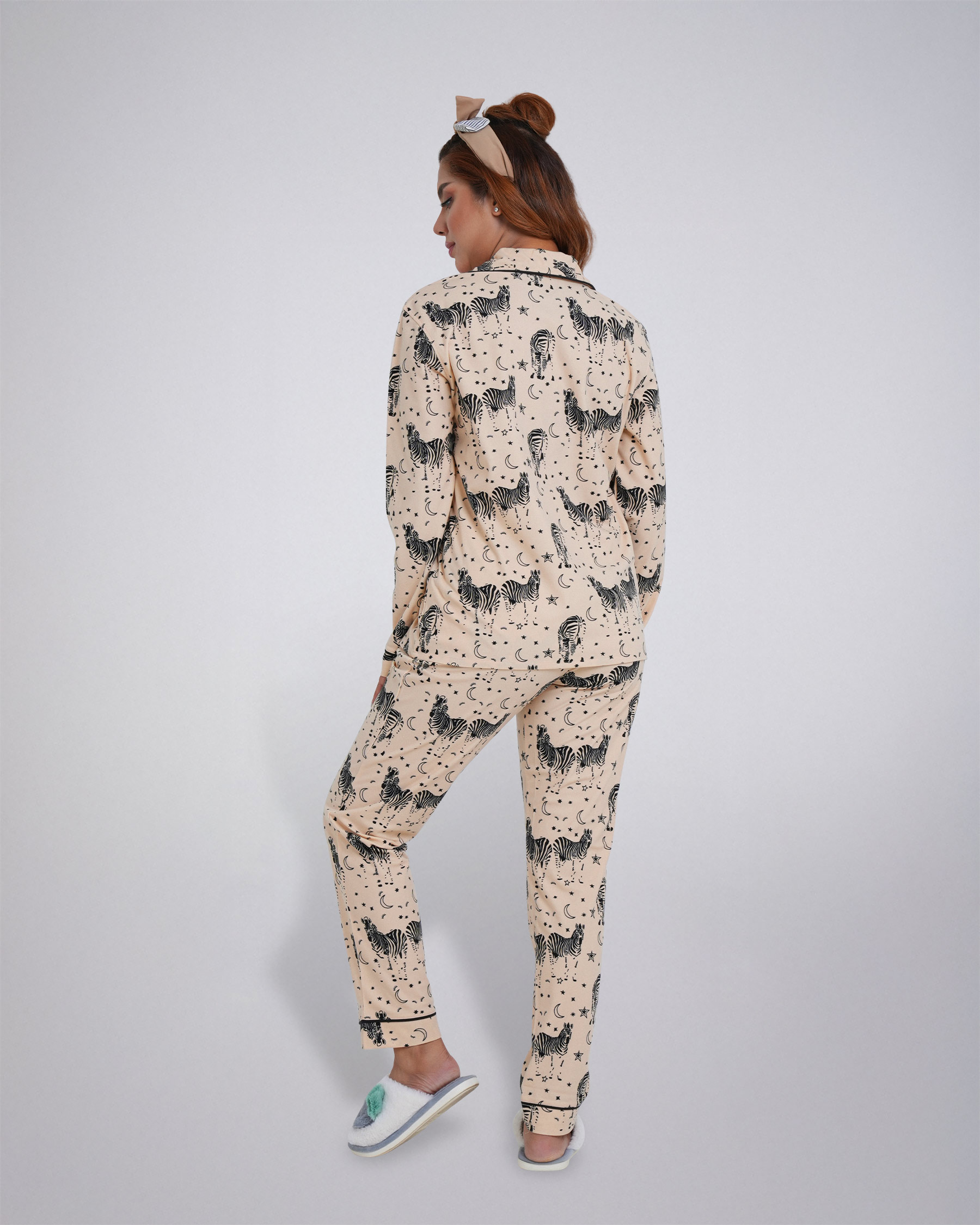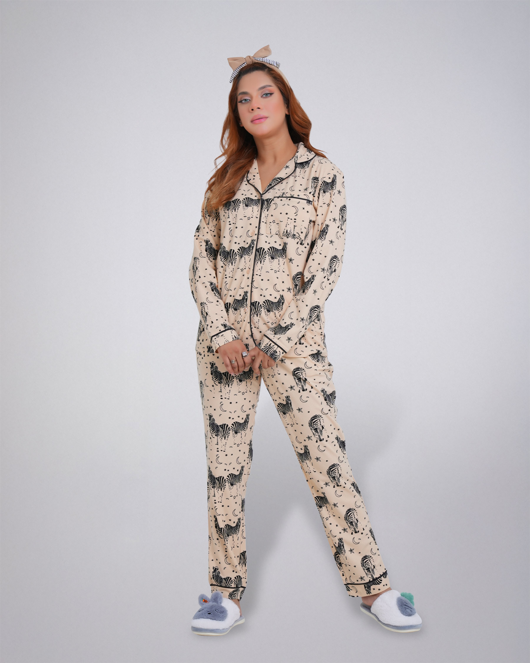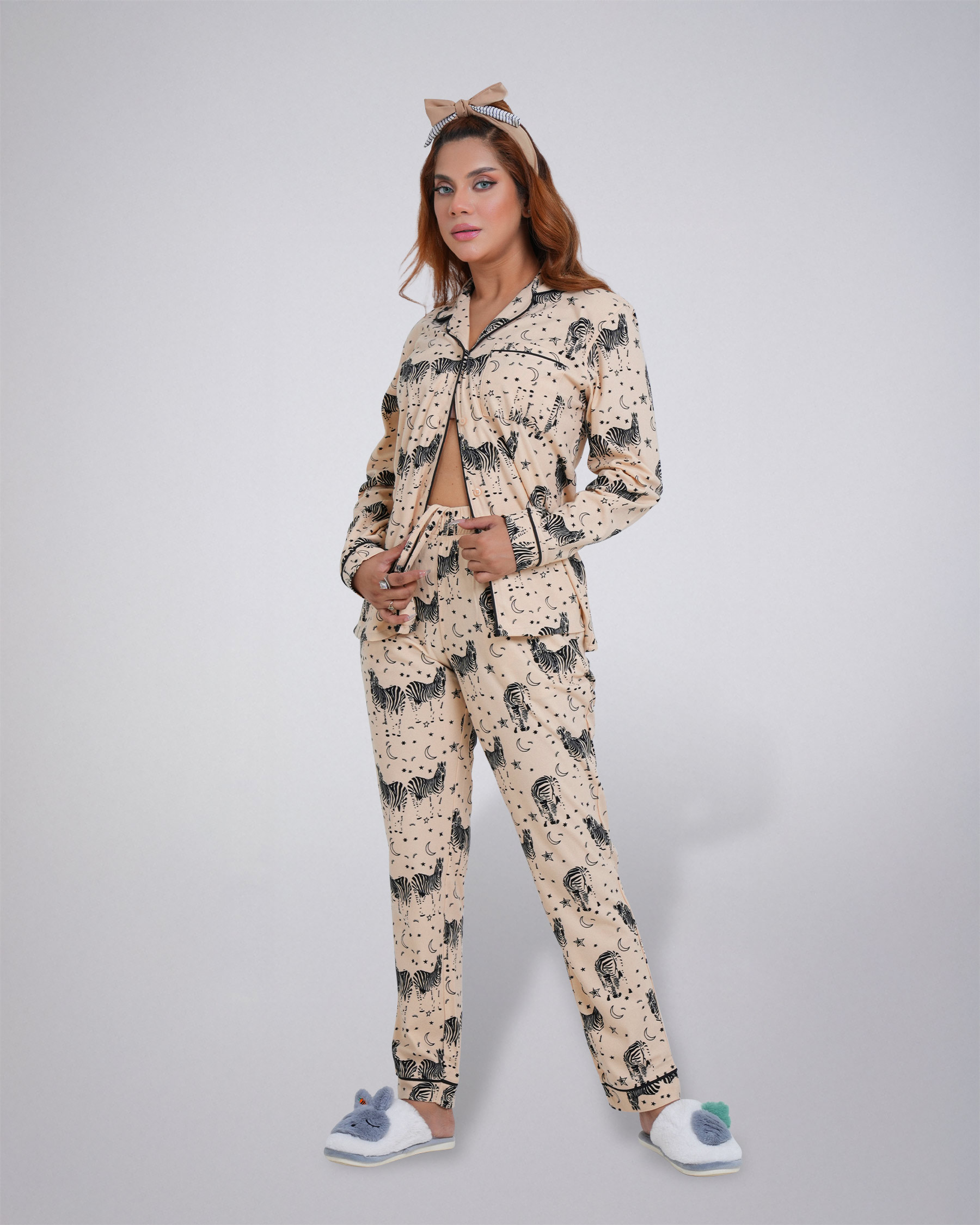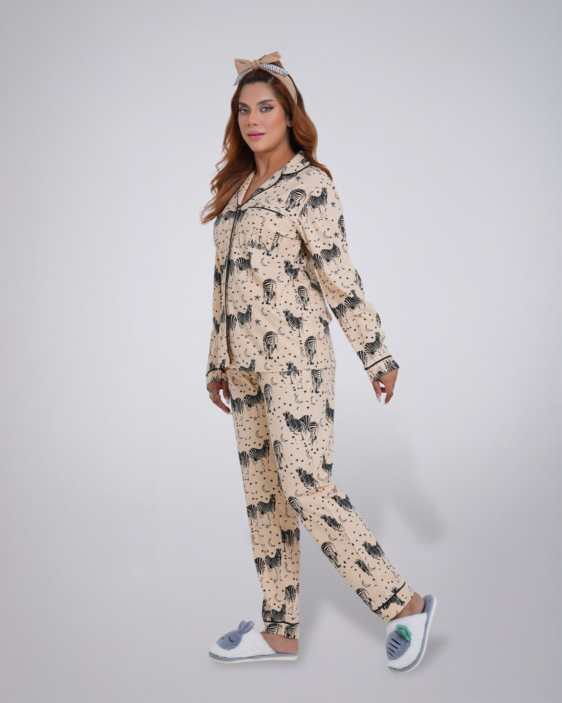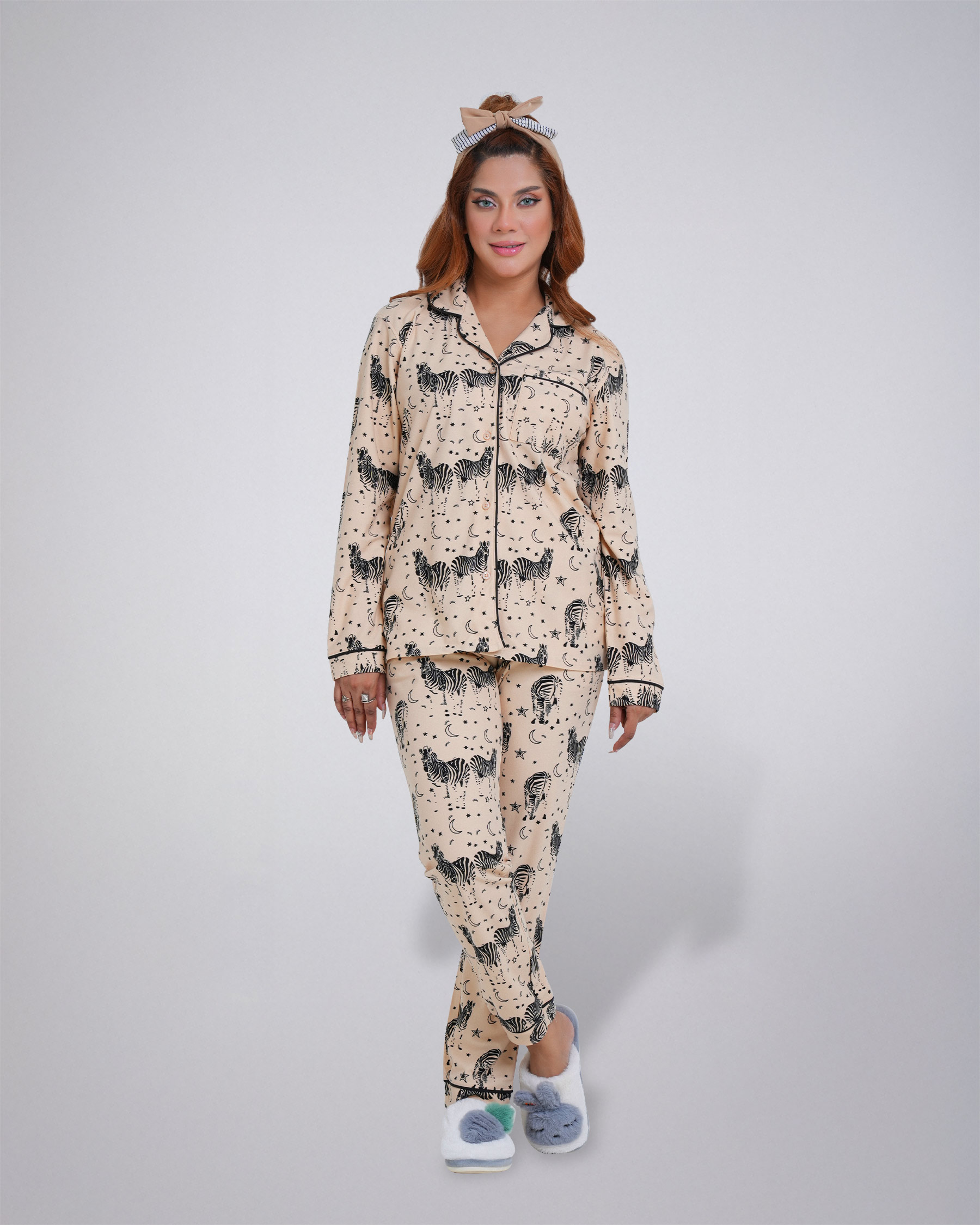 Leafletic Women's All-Over Print Sleepwear Set | Long-Sleeve Button-Down Shirt & Matching Trousers | Soft & Comfortable Nightwear | Loungewear Pajama Set | Two-Piece Night Suit