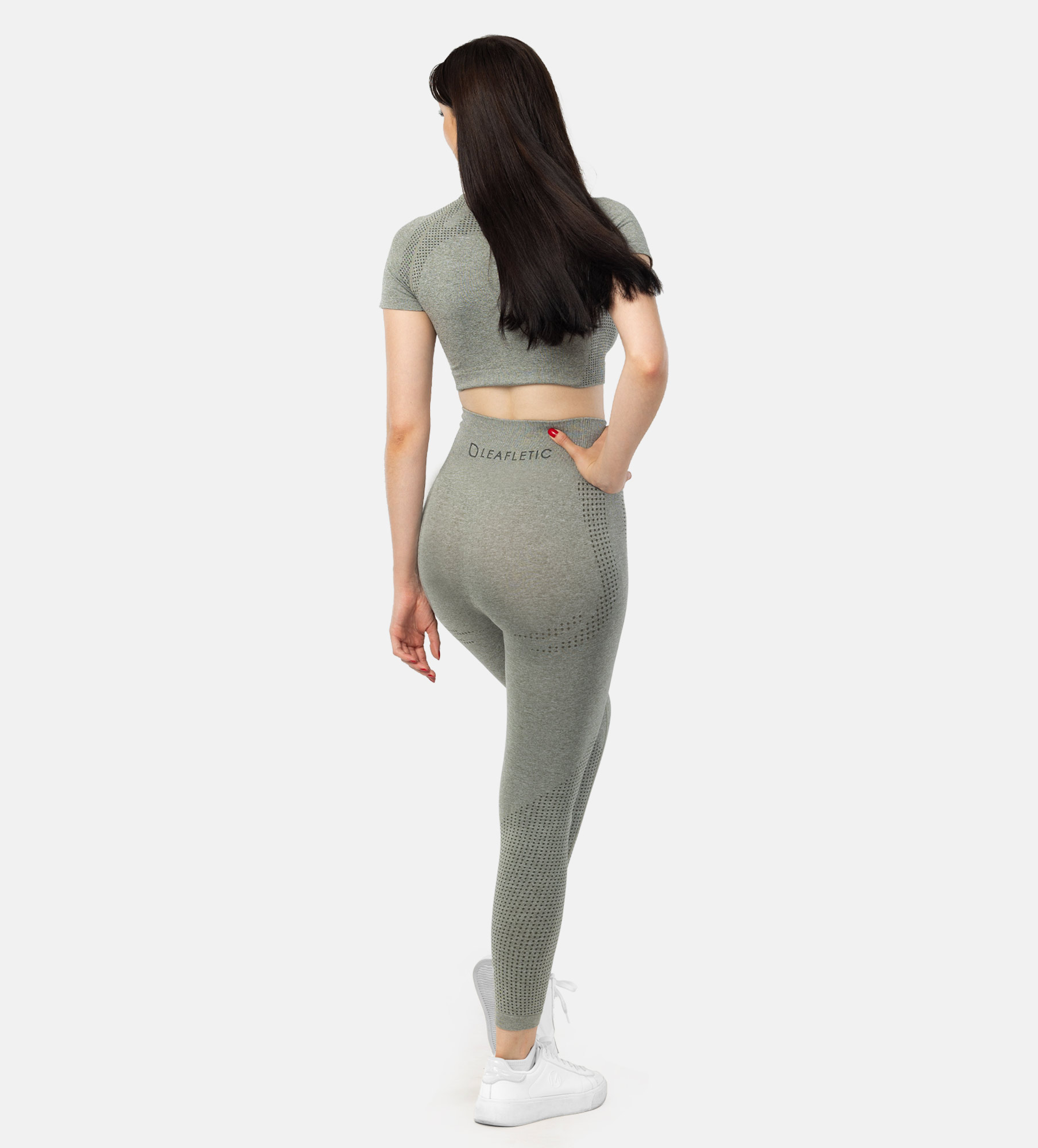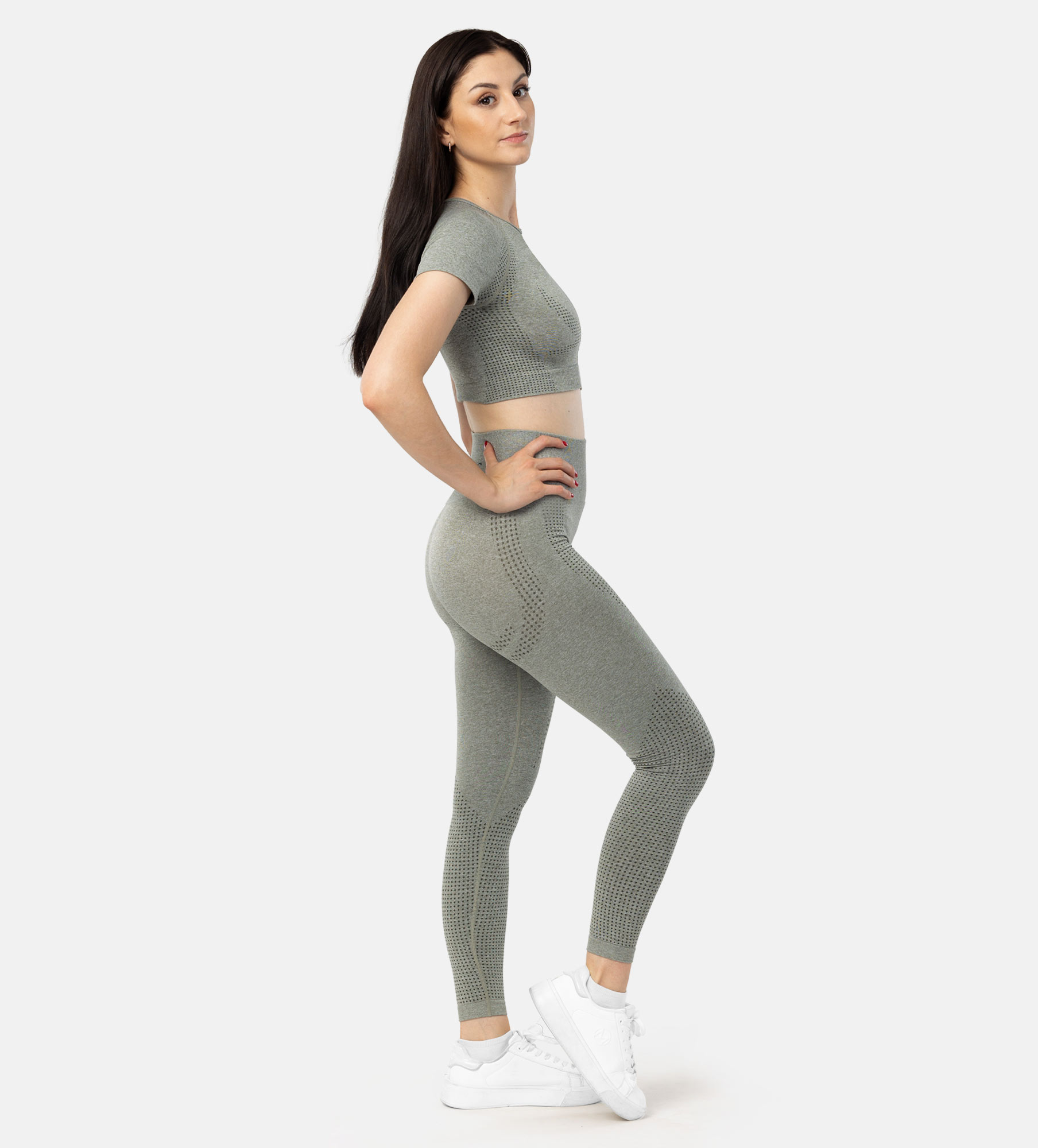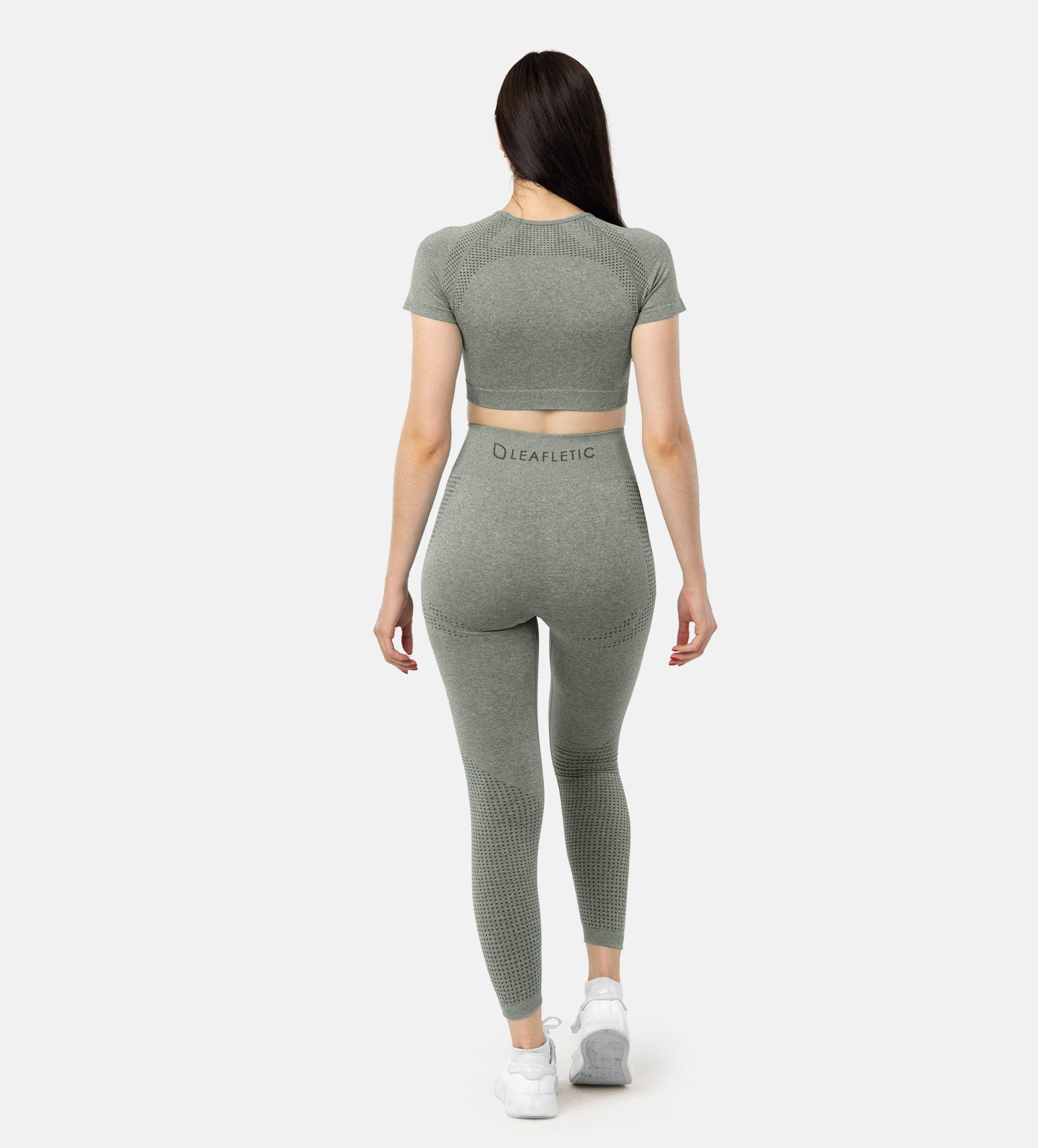 Take your fitness journey to the next level with the Leafletic Seamless Activewear Set. Designed for the modern woman, this two-piece outfit combines high-performance functionality with a sleek, seamless design for a flattering and comfortable fit. The set includes a stylish crop top with a short sleeve and a pair of high-waisted leggings, both crafted from a premium blend of 60% Polyamide, 35% Polyester, and 5% Spandex. This advanced fabric blend offers exceptional breathability and moisture-wicking properties, keeping you cool and dry even during the most intense workouts. The seamless construction minimizes chafing and irritation, providing a smooth and comfortable experience.