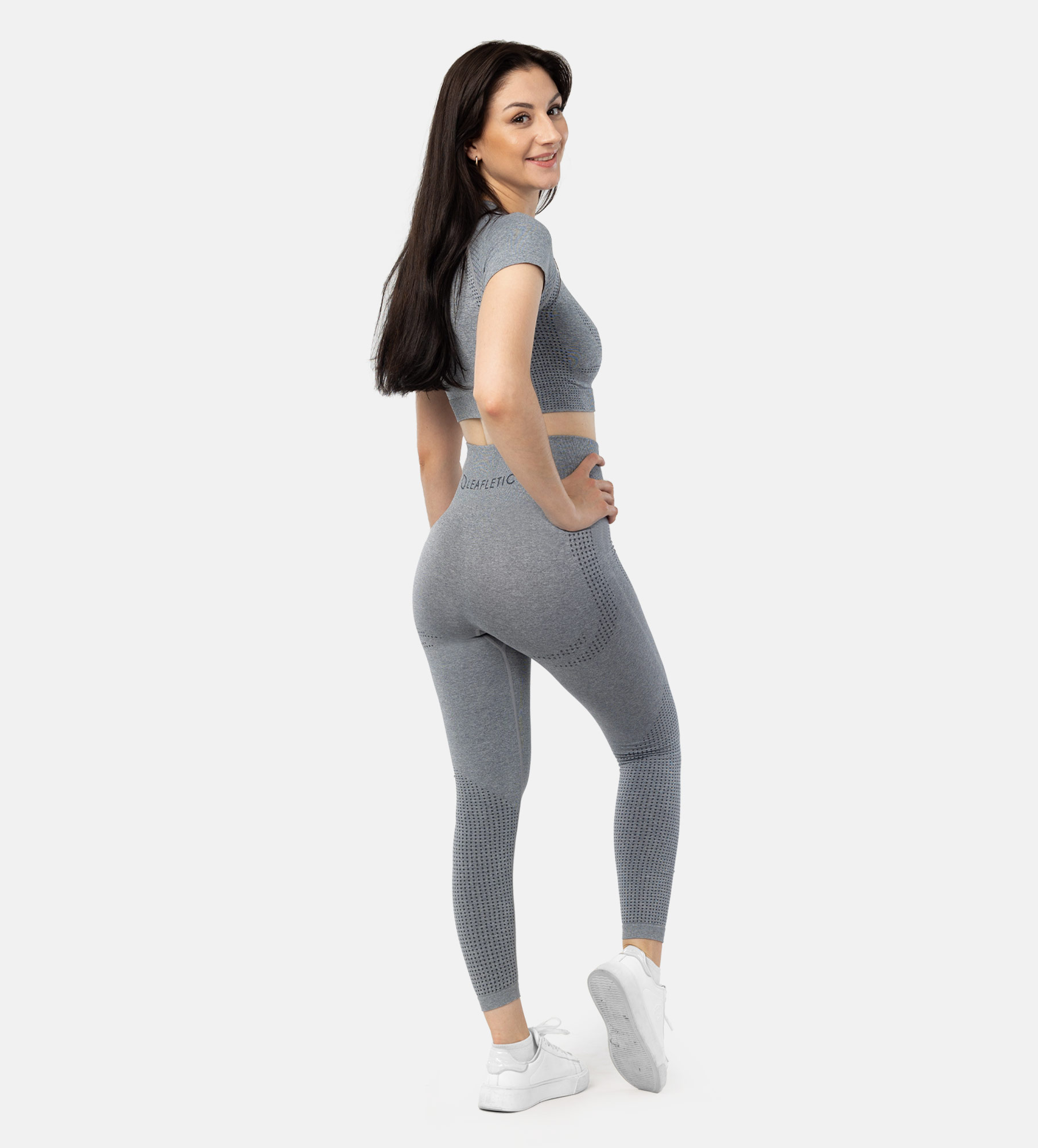 Take your fitness journey to the next level with the Leafletic Seamless Activewear Set. Designed for the modern woman, this two-piece outfit combines high-performance functionality with a sleek, seamless design for a flattering and comfortable fit. The set includes a stylish crop top with a short sleeve and a pair of high-waisted leggings, both crafted from a premium blend of 60% Polyamide, 35% Polyester, and 5% Spandex. This advanced fabric blend offers exceptional breathability and moisture-wicking properties, keeping you cool and dry even during the most intense workouts. The seamless construction minimizes chafing and irritation, providing a smooth and comfortable experience.