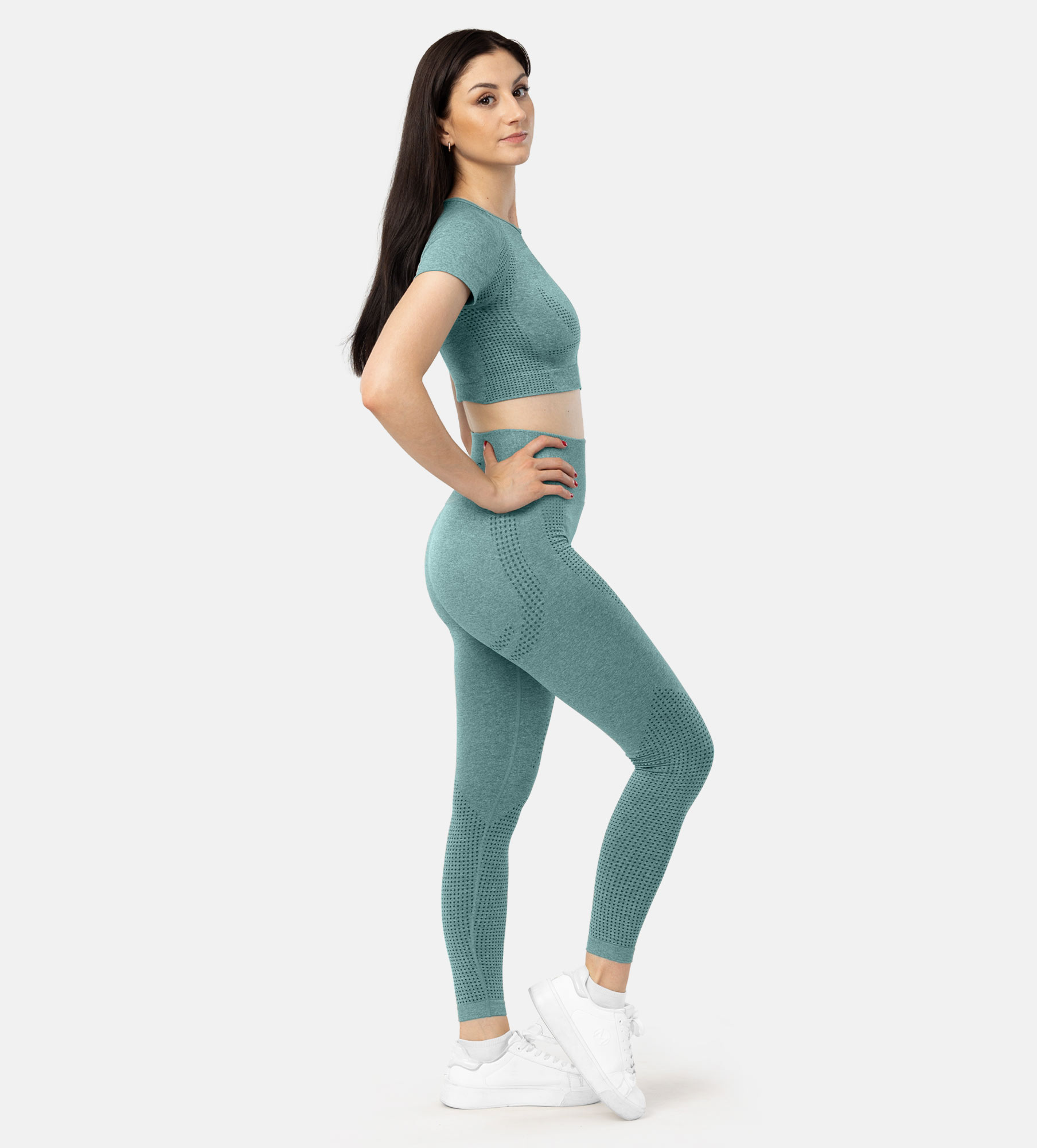 Take your fitness journey to the next level with the Leafletic Seamless Activewear Set. Designed for the modern woman, this two-piece outfit combines high-performance functionality with a sleek, seamless design for a flattering and comfortable fit. The set includes a stylish crop top with a short sleeve and a pair of high-waisted leggings, both crafted from a premium blend of 60% Polyamide, 35% Polyester, and 5% Spandex. This advanced fabric blend offers exceptional breathability and moisture-wicking properties, keeping you cool and dry even during the most intense workouts. The seamless construction minimizes chafing and irritation, providing a smooth and comfortable experience.