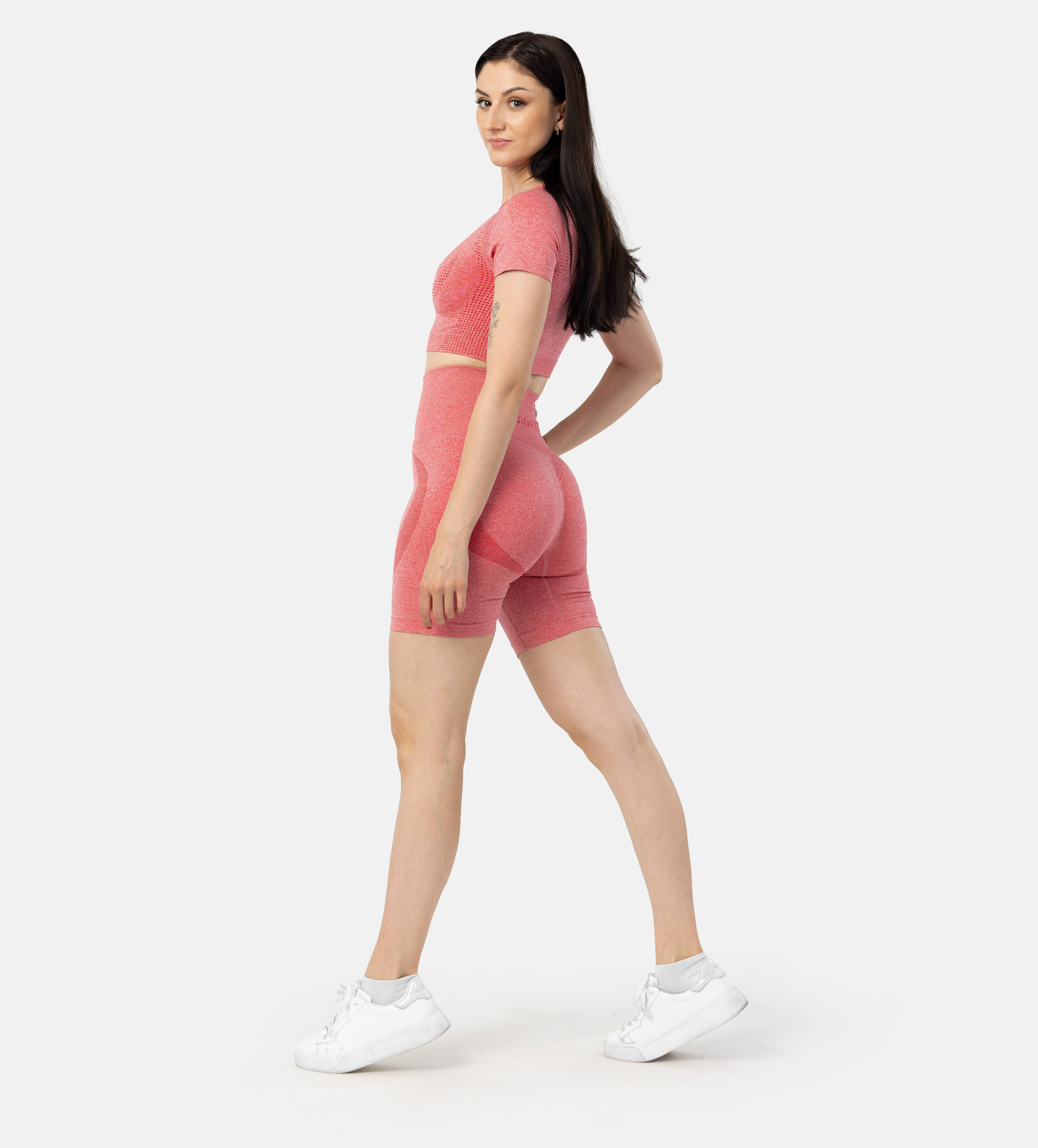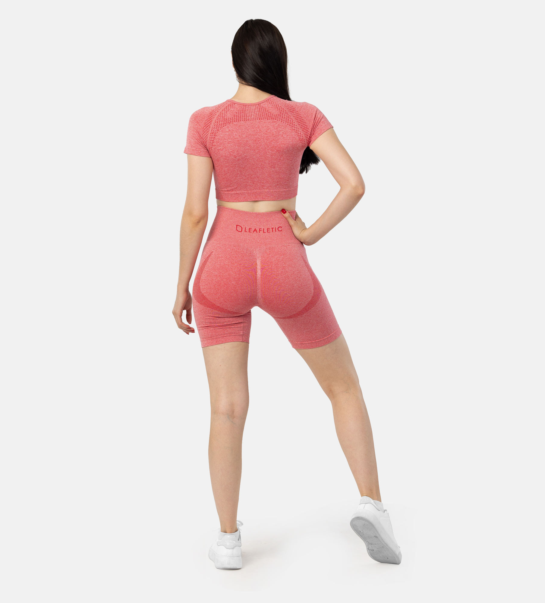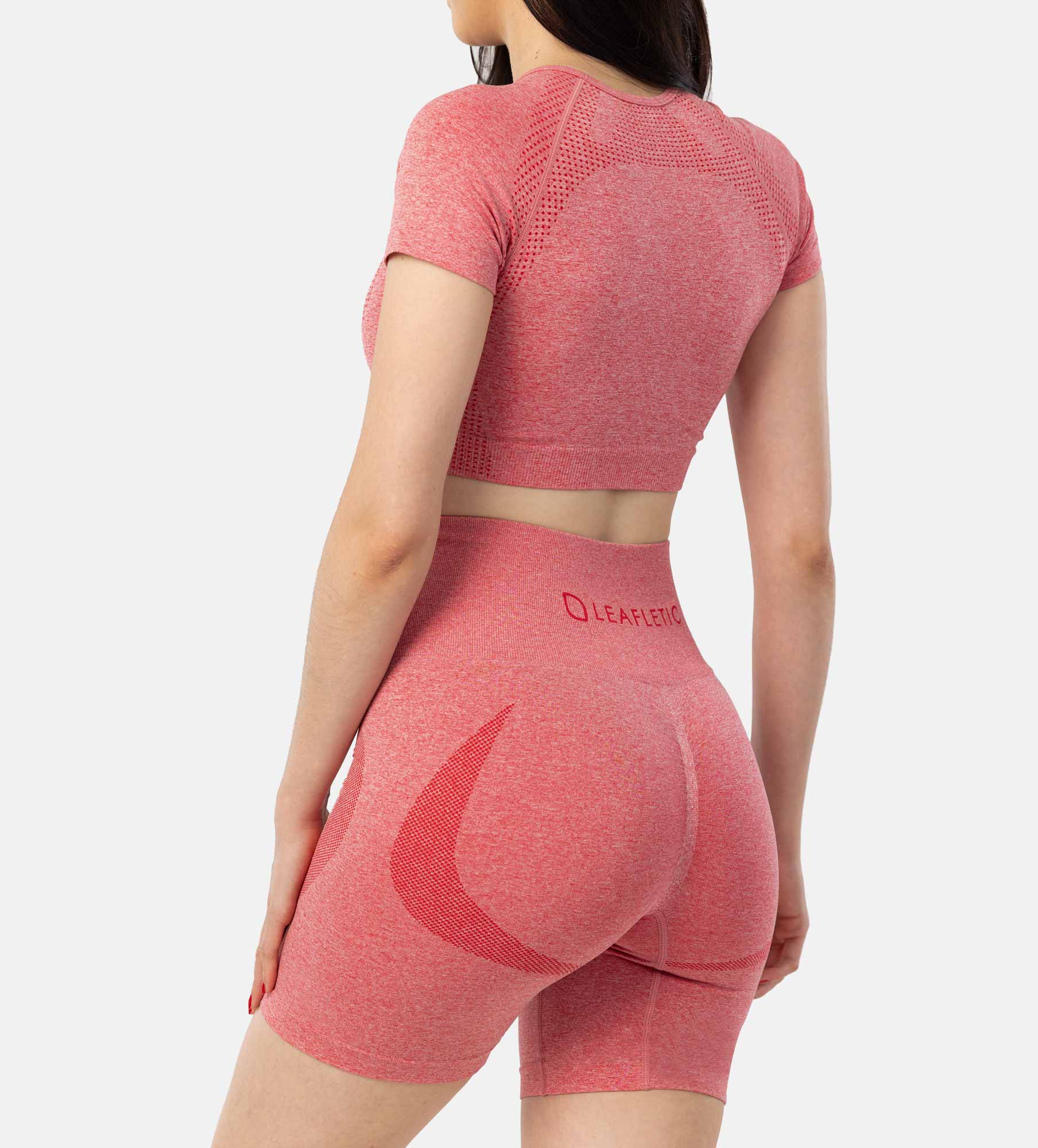 Take your fitness journey to the next level with the Leafletic Seamless Activewear Set. Designed for the modern woman, this two-piece outfit combines high-performance functionality with a sleek, seamless design for a flattering and comfortable fit. The set includes a stylish crop top with a short sleeve and a pair of high-waisted shorts, both crafted from a premium blend of 60% Polyamide, 35% Polyester and 5% Spandex. This advanced fabric blend offers exceptional breathability and moisture-wicking properties, keeping you cool and dry even during the most intense workouts. The seamless construction minimizes chafing and irritation, providing a smooth and comfortable experience.