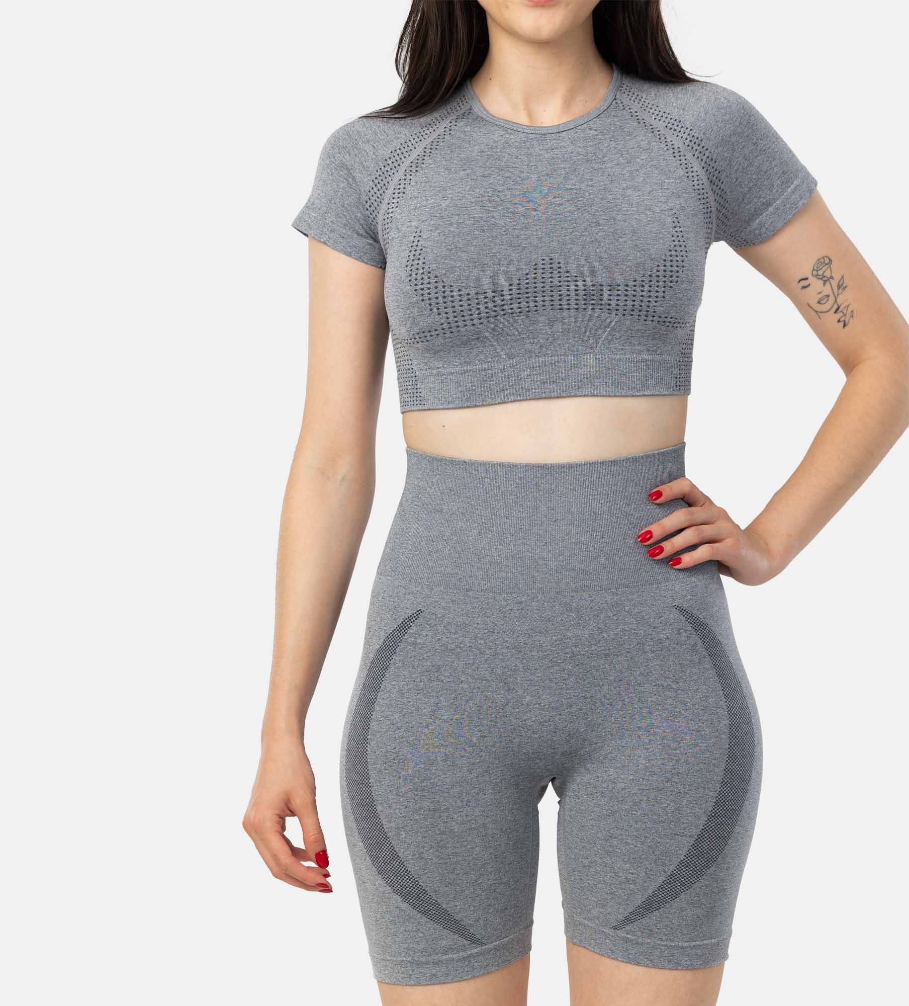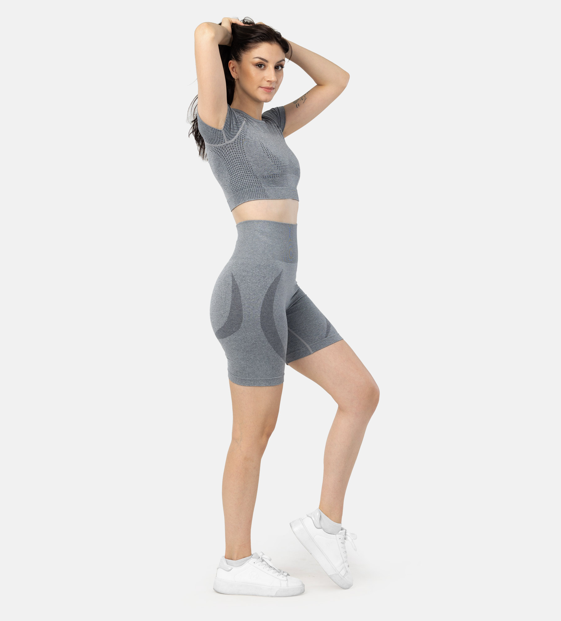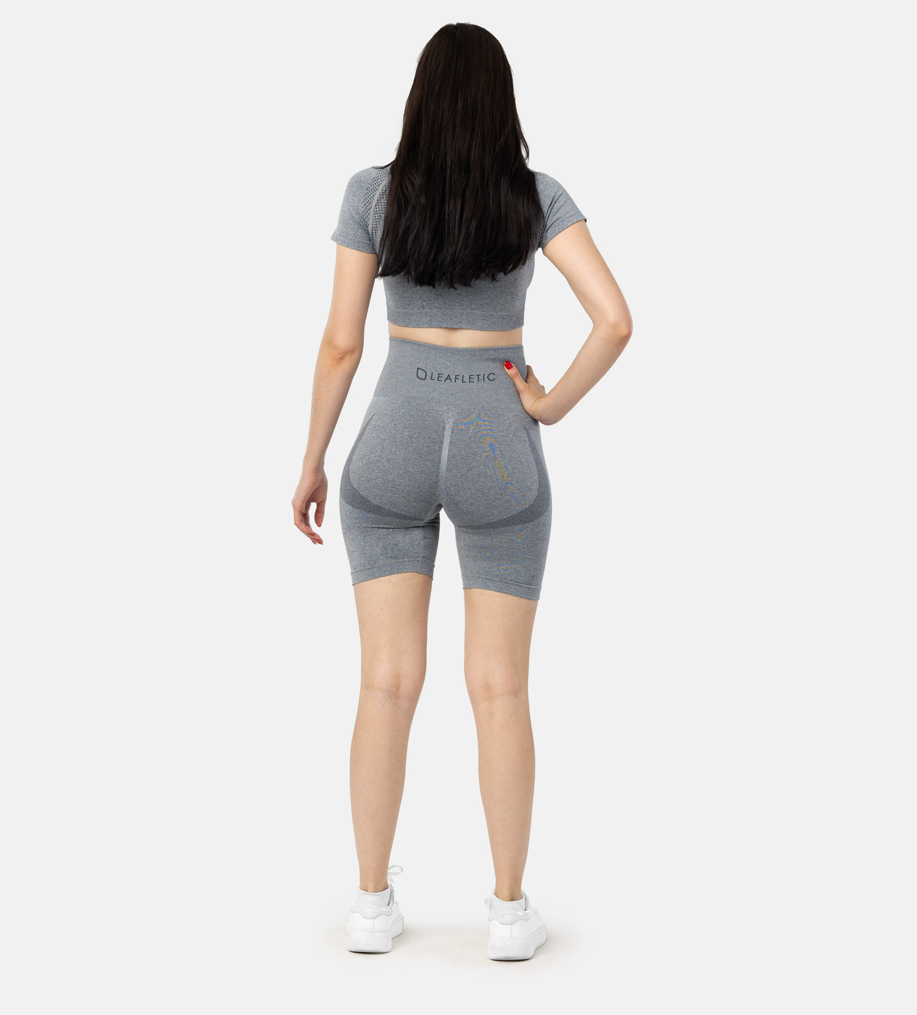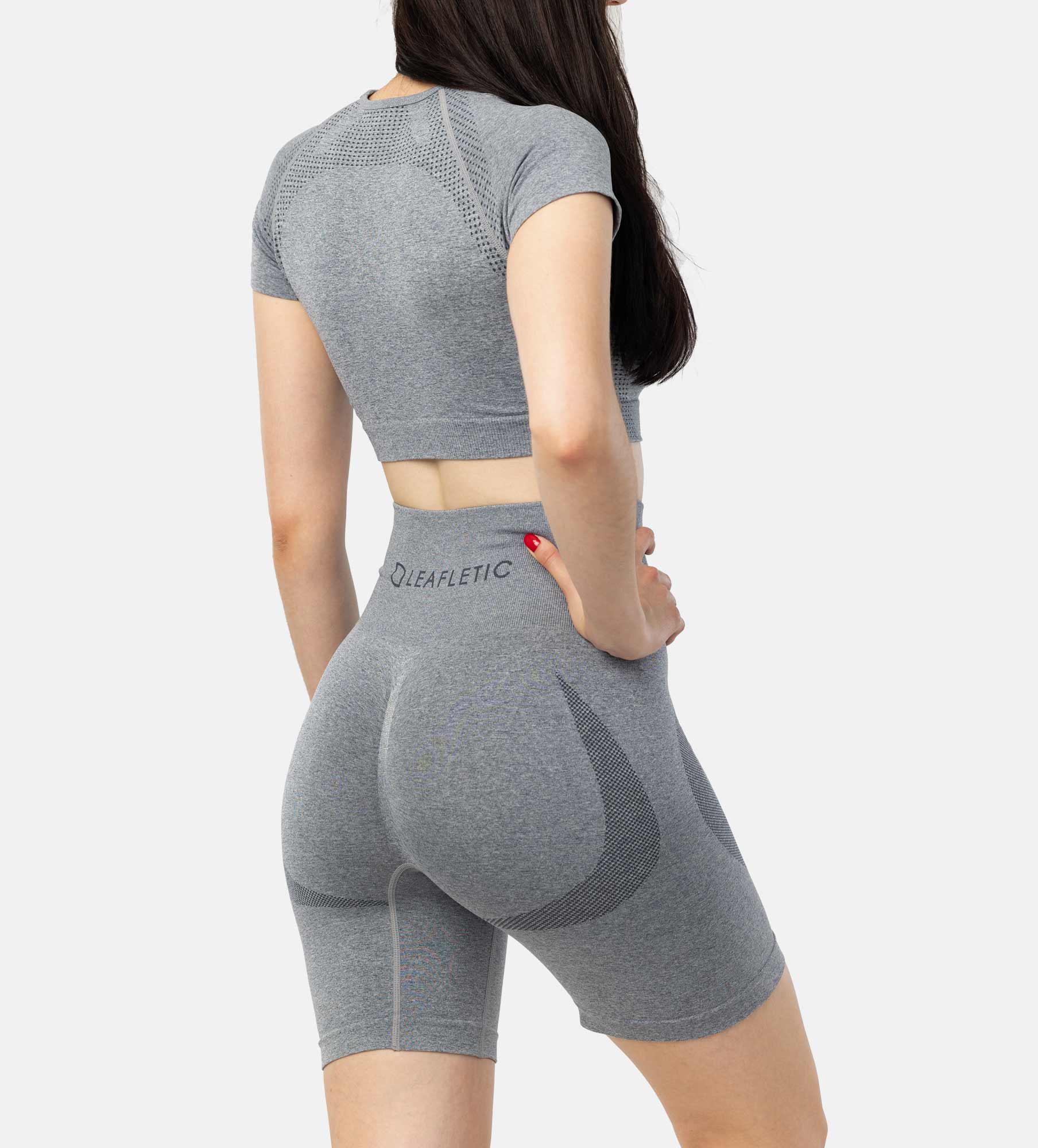 Take your fitness journey to the next level with the Leafletic Seamless Activewear Set. Designed for the modern woman, this two-piece outfit combines high-performance functionality with a sleek, seamless design for a flattering and comfortable fit. The set includes a stylish crop top with a short sleeve and a pair of high-waisted shorts, both crafted from a premium blend of 60% Polyamide, 35% Polyester and 5% Spandex. This advanced fabric blend offers exceptional breathability and moisture-wicking properties, keeping you cool and dry even during the most intense workouts. The seamless construction minimizes chafing and irritation, providing a smooth and comfortable experience.