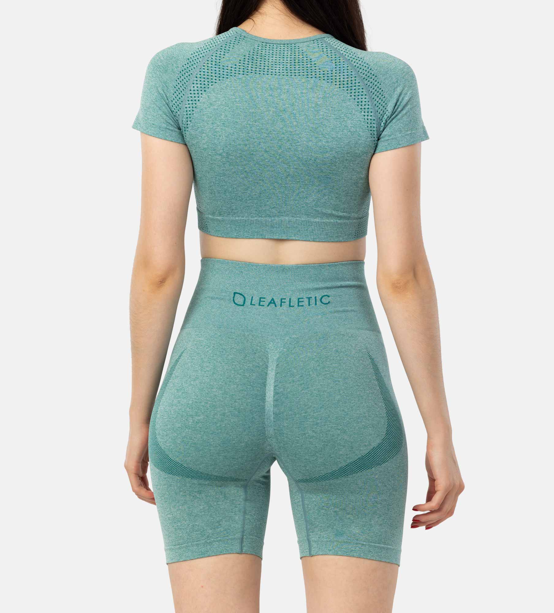 Take your fitness journey to the next level with the Leafletic Seamless Activewear Set. Designed for the modern woman, this two-piece outfit combines high-performance functionality with a sleek, seamless design for a flattering and comfortable fit. The set includes a stylish crop top with a short sleeve and a pair of high-waisted shorts, both crafted from a premium blend of 60% Polyamide, 35% Polyester and 5% Spandex. This advanced fabric blend offers exceptional breathability and moisture-wicking properties, keeping you cool and dry even during the most intense workouts. The seamless construction minimizes chafing and irritation, providing a smooth and comfortable experience.