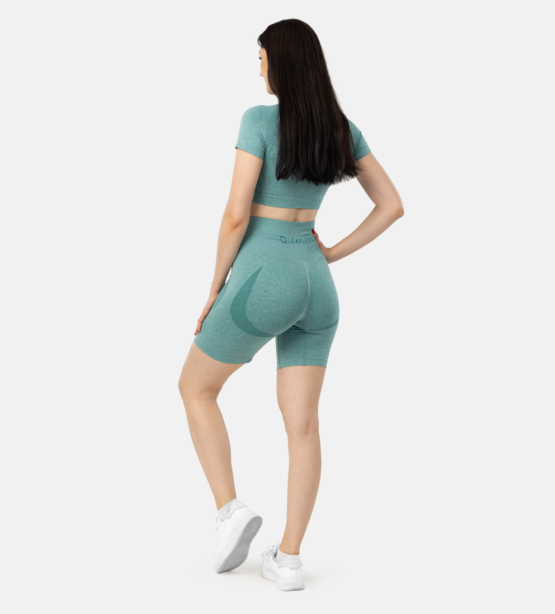 The shorts feature a high-waisted compression band that offers excellent core support and a sculpted silhouette. The four-way stretch fabric ensures maximum freedom of movement, making this set ideal for yoga, pilates, weightlifting and running. The stylish textured pattern adds a modern touch to the set, making you look as good as you feel. Whether you're an experienced athlete or just starting your fitness journey, the Leafletic Seamless Activewear Set is the perfect choice for a comfortable, stylish and high-performance workout.