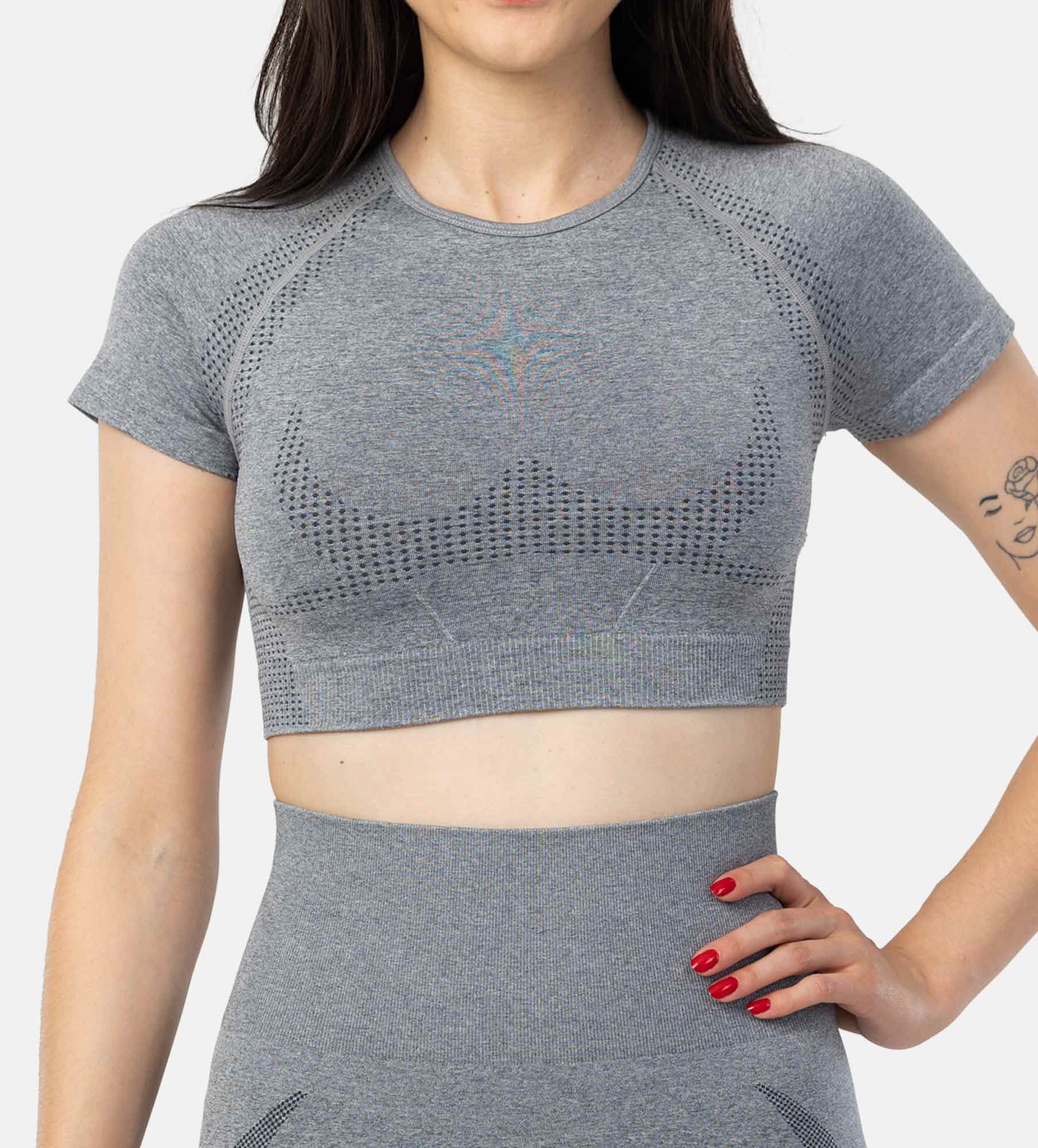 Step up your workout wardrobe with the Leafletic Women’s Short Sleeve Seamless Activewear Crop T-shirt. Designed for both high-performance and modern style, this top is an essential for any fitness enthusiast. The top is crafted from an advanced fabric blend of 60% Polyamide, 35% Polyester, and 5% Spandex. This combination provides a luxurious, second-skin feel while offering exceptional functionality. Polyamide contributes to the shirt's durability and softness, while Polyester ensures superior moisture-wicking and quick-drying properties. The touch of Spandex provides the perfect amount of stretch, allowing for a full range of motion during any activity.