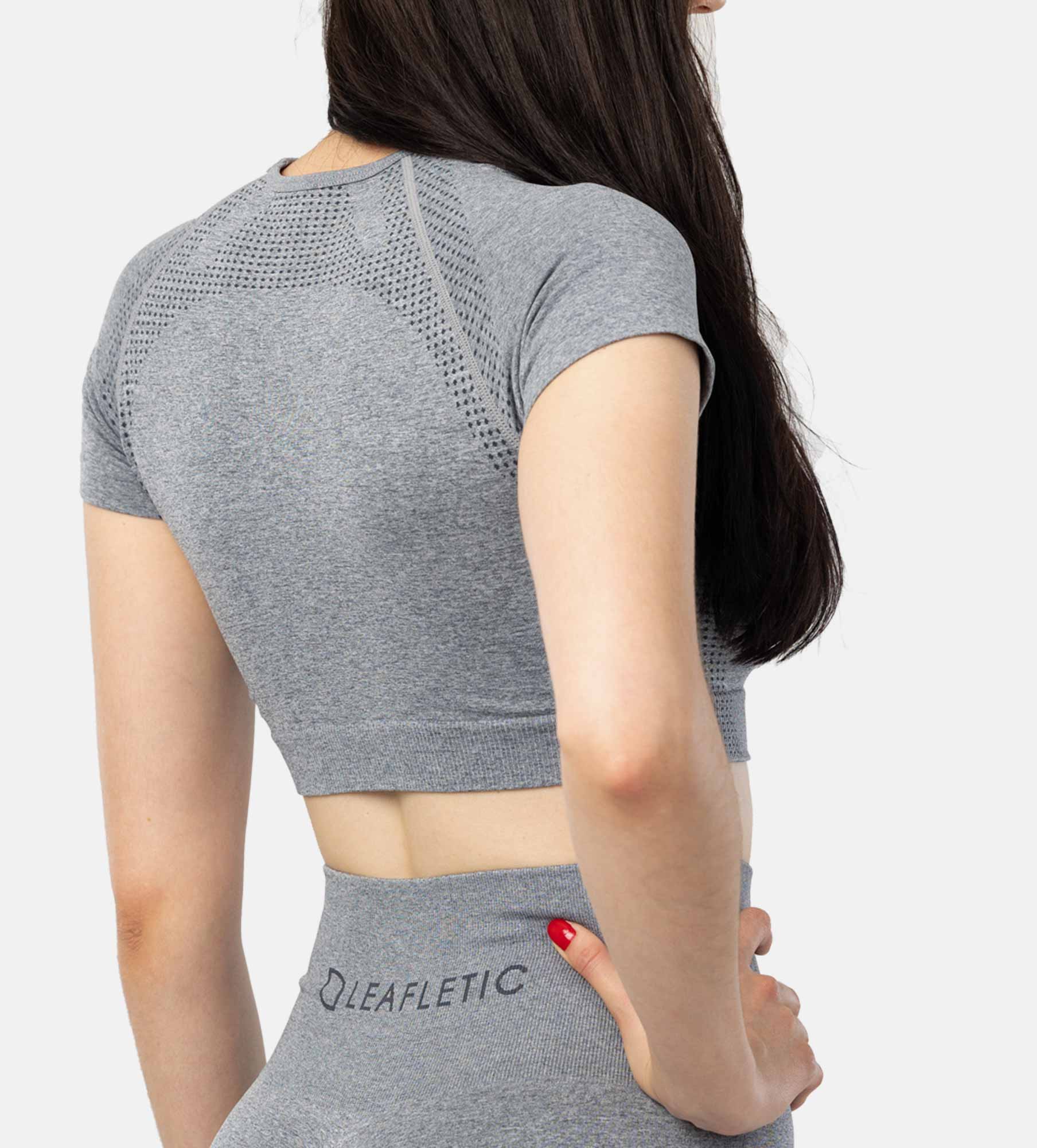The seamless construction of the top minimizes chafing and irritation, providing ultimate comfort throughout your workout. The cropped design offers a trendy and flattering silhouette that pairs perfectly with high-waisted leggings or shorts. Its lightweight and breathable nature makes it an ideal choice for gym sessions, yoga, running, and any form of training, especially in Bangladesh's climate. With its sleek design and high-performance features, this Leafletic crop top is a must-have for looking and feeling your best while you train.