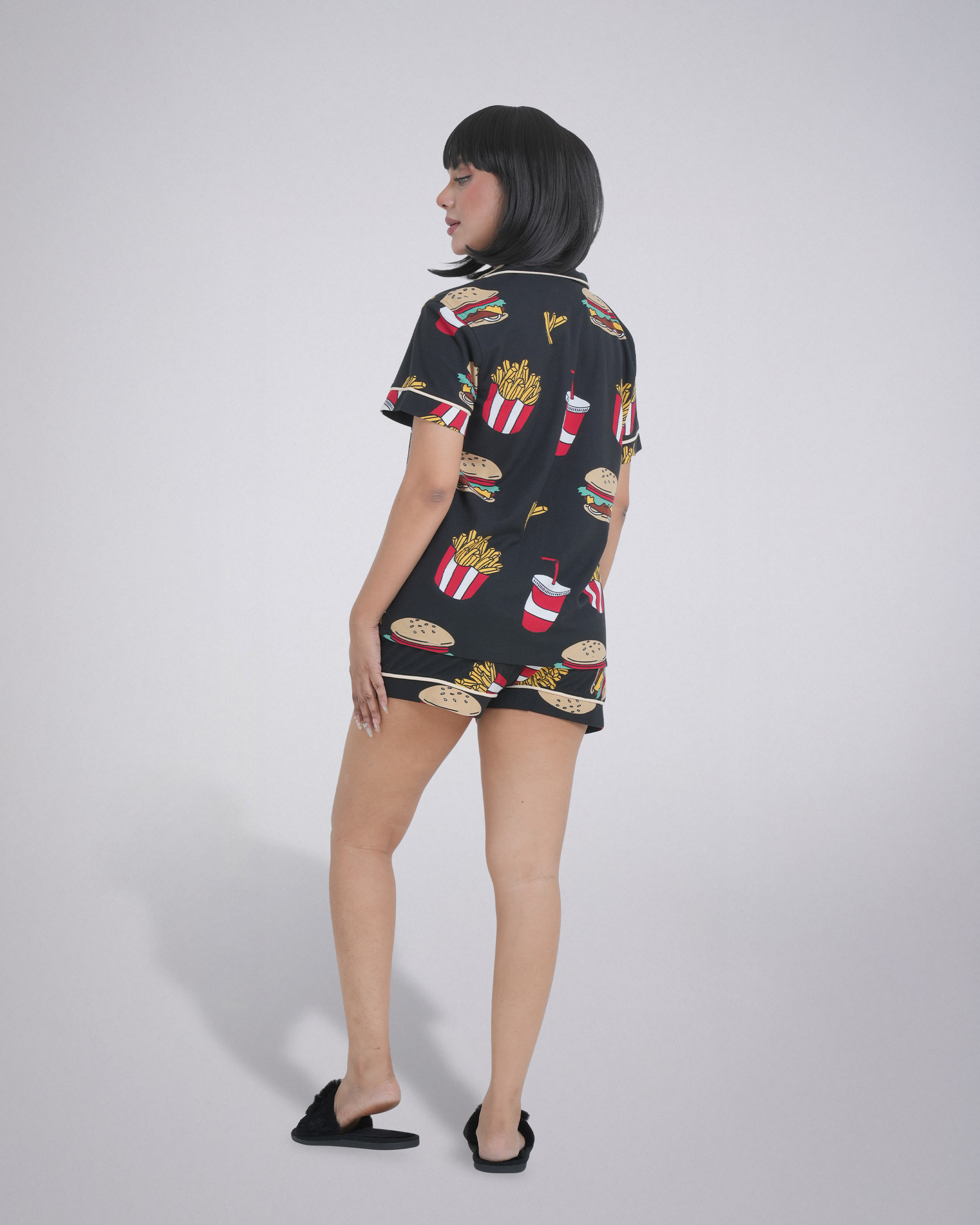 Leafletic Women's Short Nightwear Set | Short-Sleeve Button-Down Shirt & Matching Shorts | Soft & Comfortable Sleepwear | All-Over Print Short Pajama Loungewear | Two-Piece Night Suit