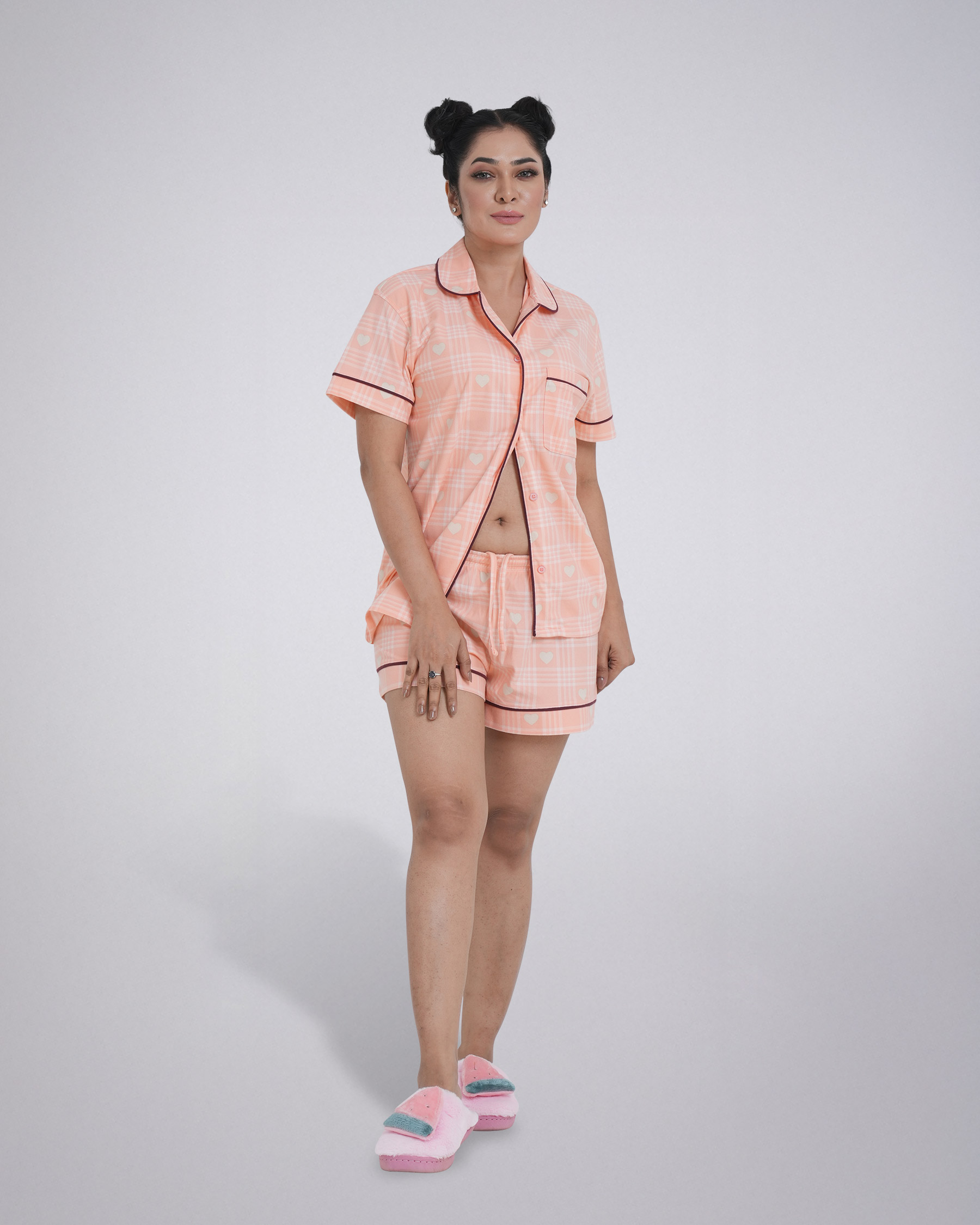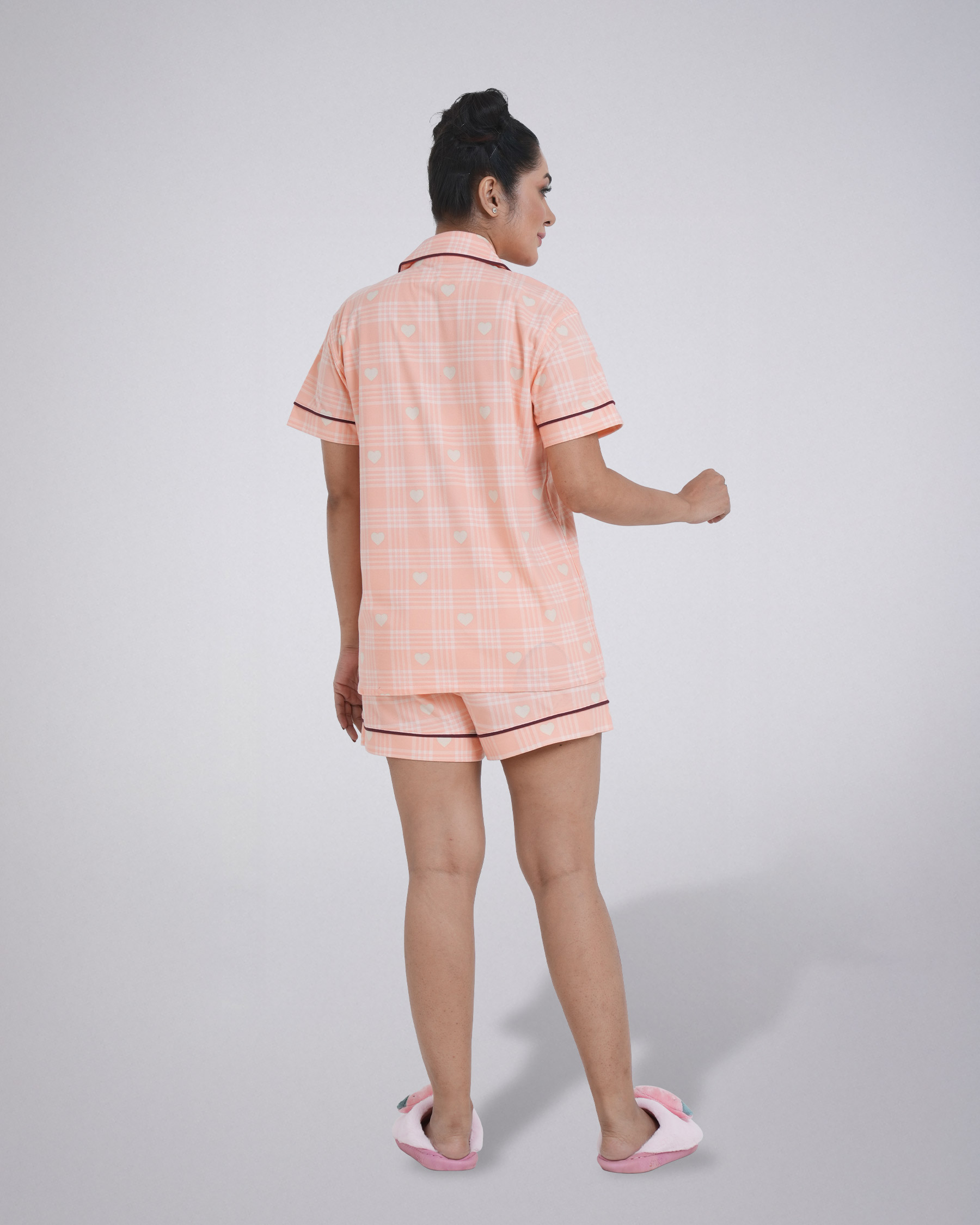 Leafletic Women's Short Nightwear Set | Short-Sleeve Button-Down Shirt & Matching Shorts | Soft & Comfortable Sleepwear | Check Print Short Pajama Loungewear | Two-Piece Night Suit